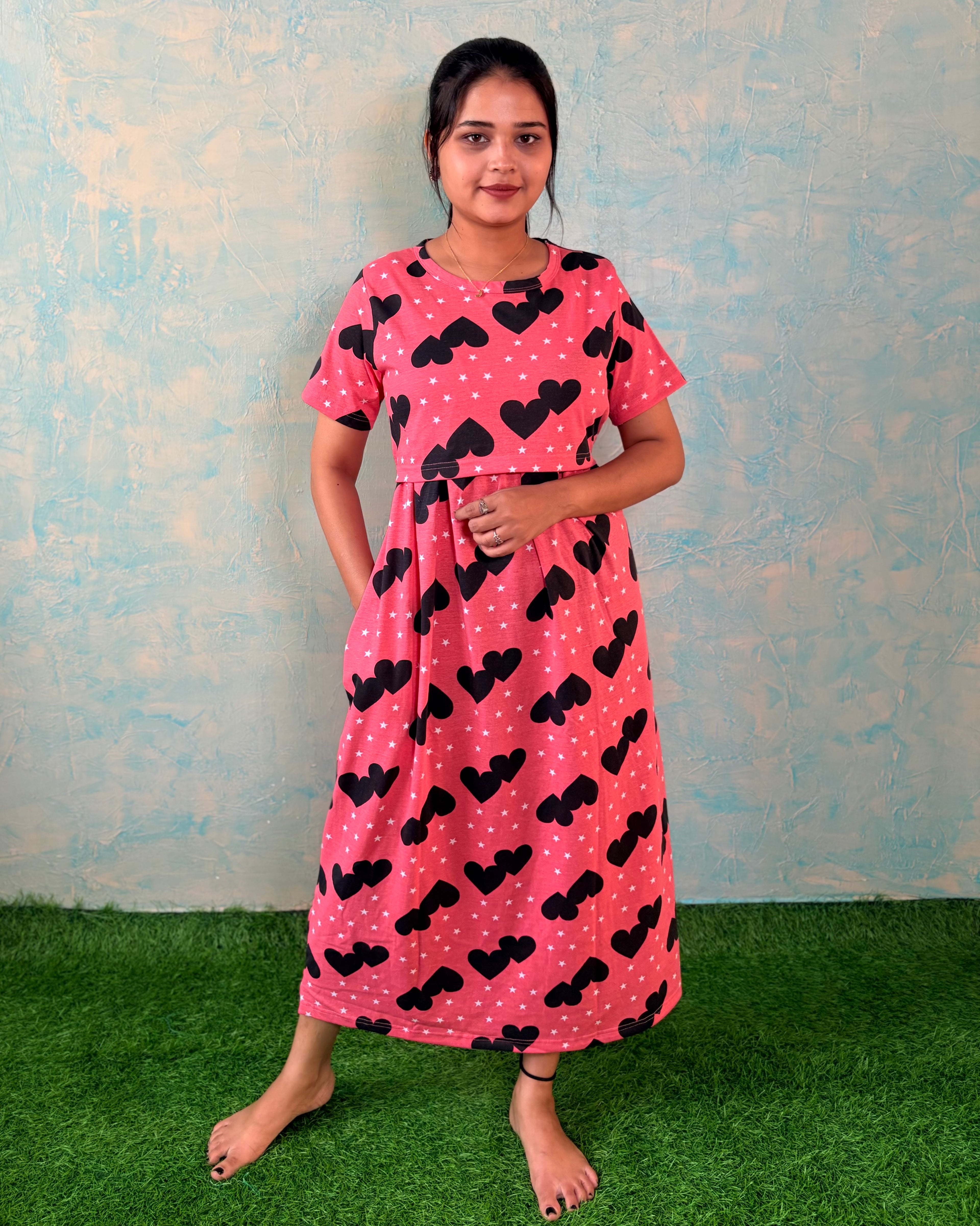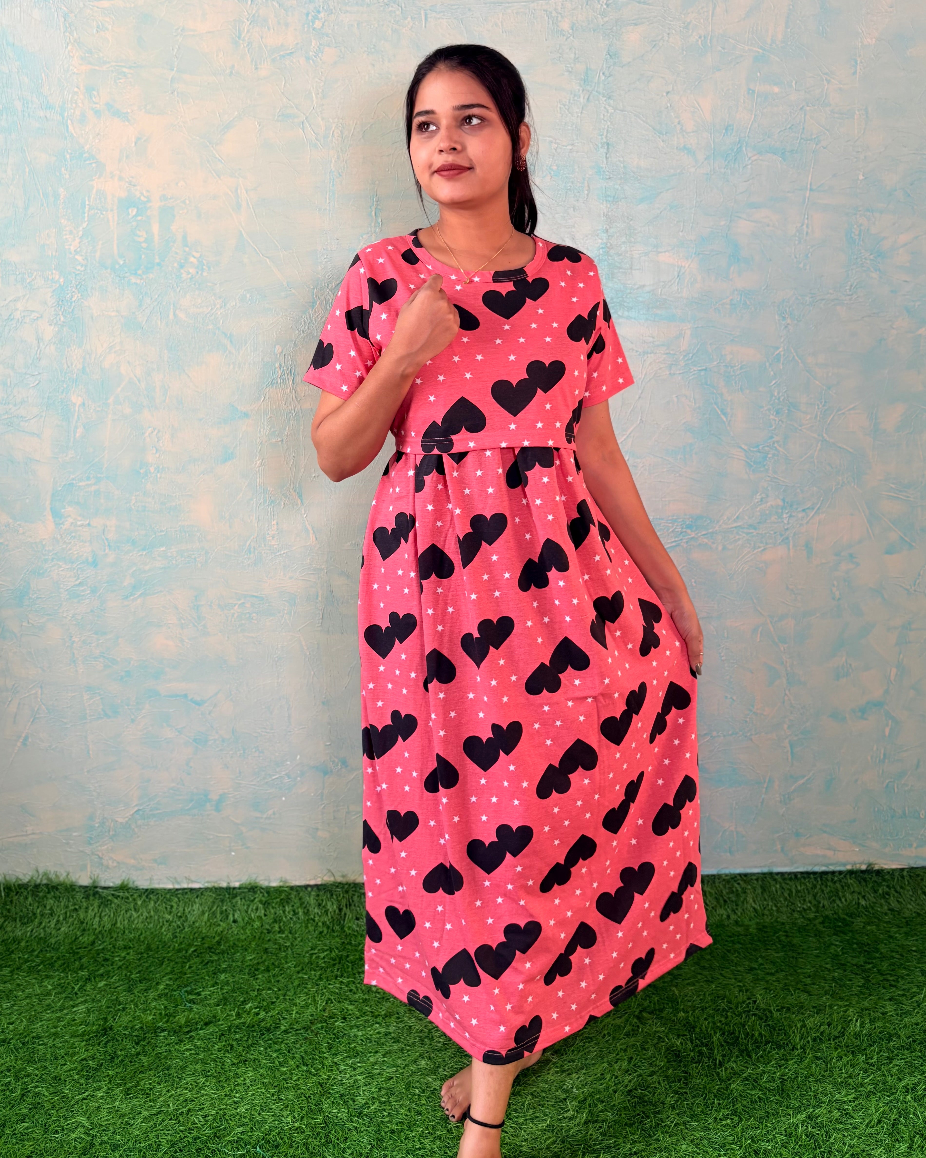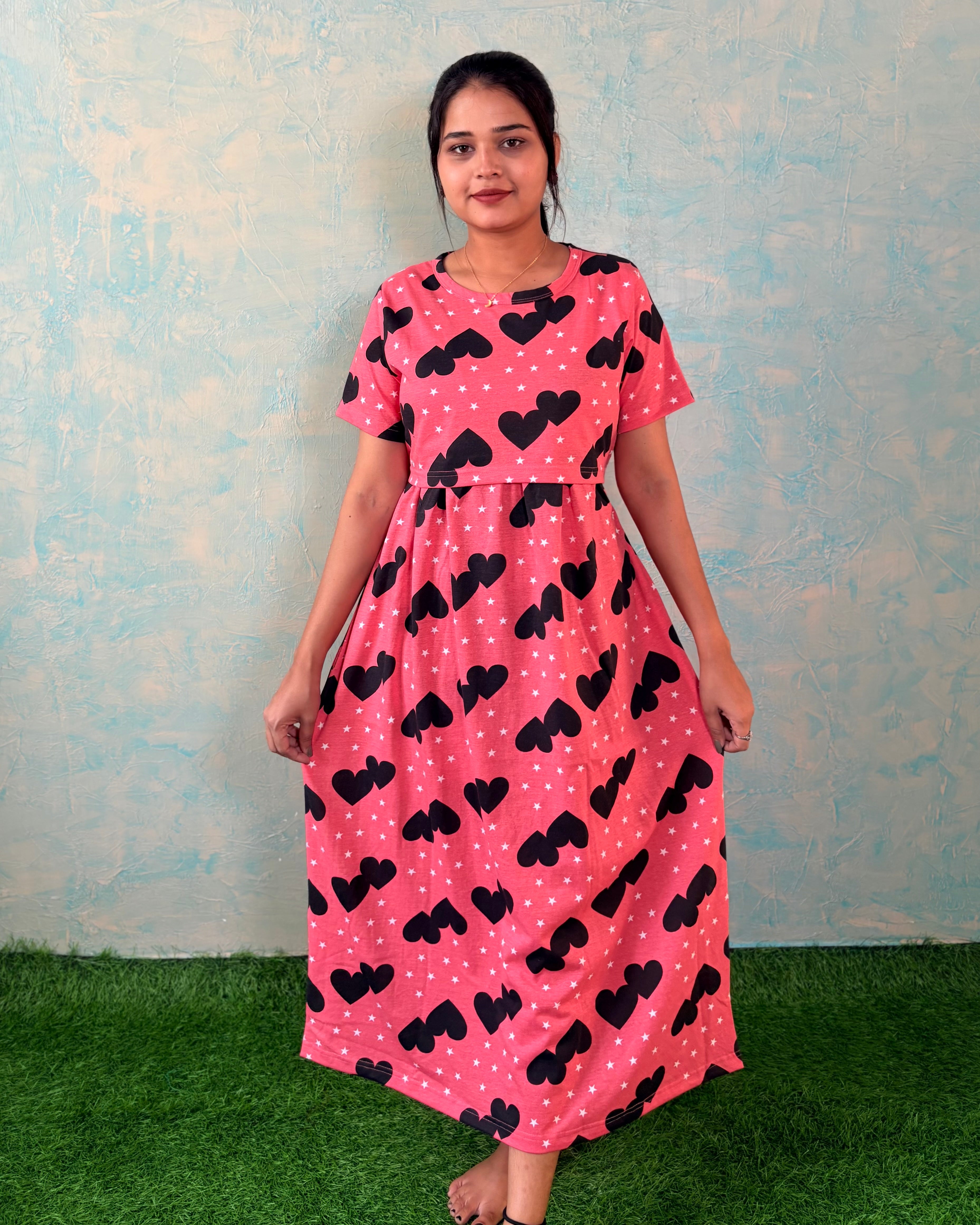 Inner feeding neck is V shape. Versatile & Stylish – Designed for both loungewear and casual outings, so you can wear it comfortably at home or when running errands. Length of the dress is 48 inches (+/-1 inch). There may be small variation in the colour due to photography and lighting effects.