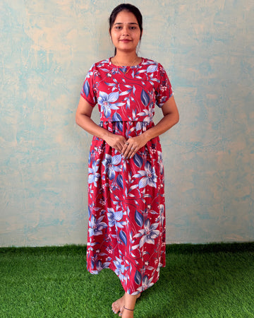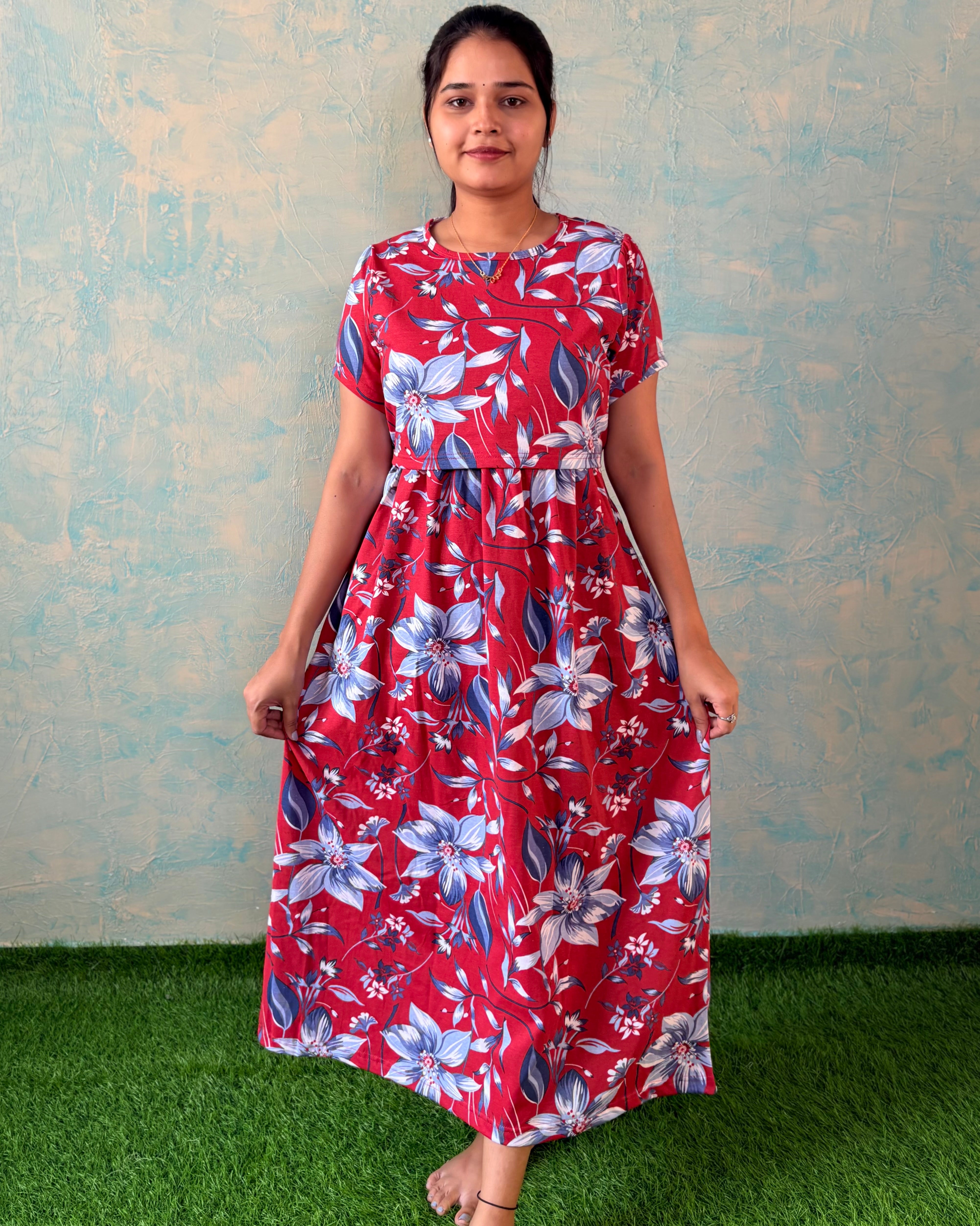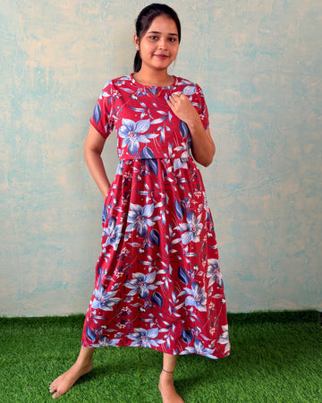 Inner feeding neck is V shape. Versatile & Stylish – Designed for both loungewear and casual outings, so you can wear it comfortably at home or when running errands. Length of the dress is 48 inches (+/-1 inch). There may be small variation in the colour due to photography and lighting effects.