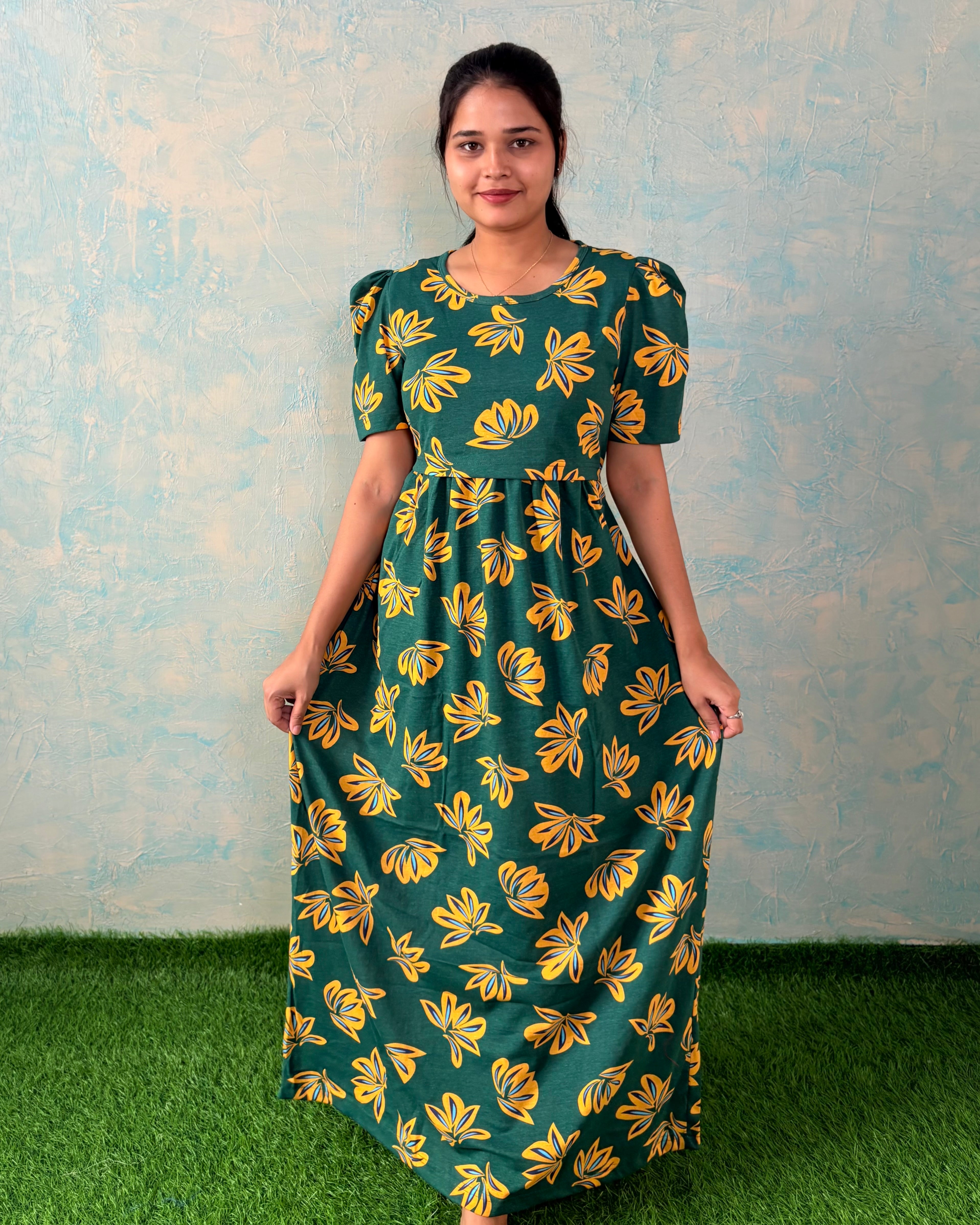 Inner feeding neck is V shape. Versatile & Stylish – Designed for both loungewear and casual outings, so you can wear it comfortably at home or when running errands. Length of the dress is 52 inches (+/-1 inch). There may be small variation in the colour due to photography and lighting effects.