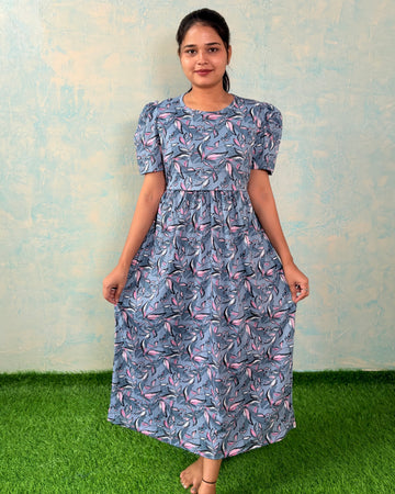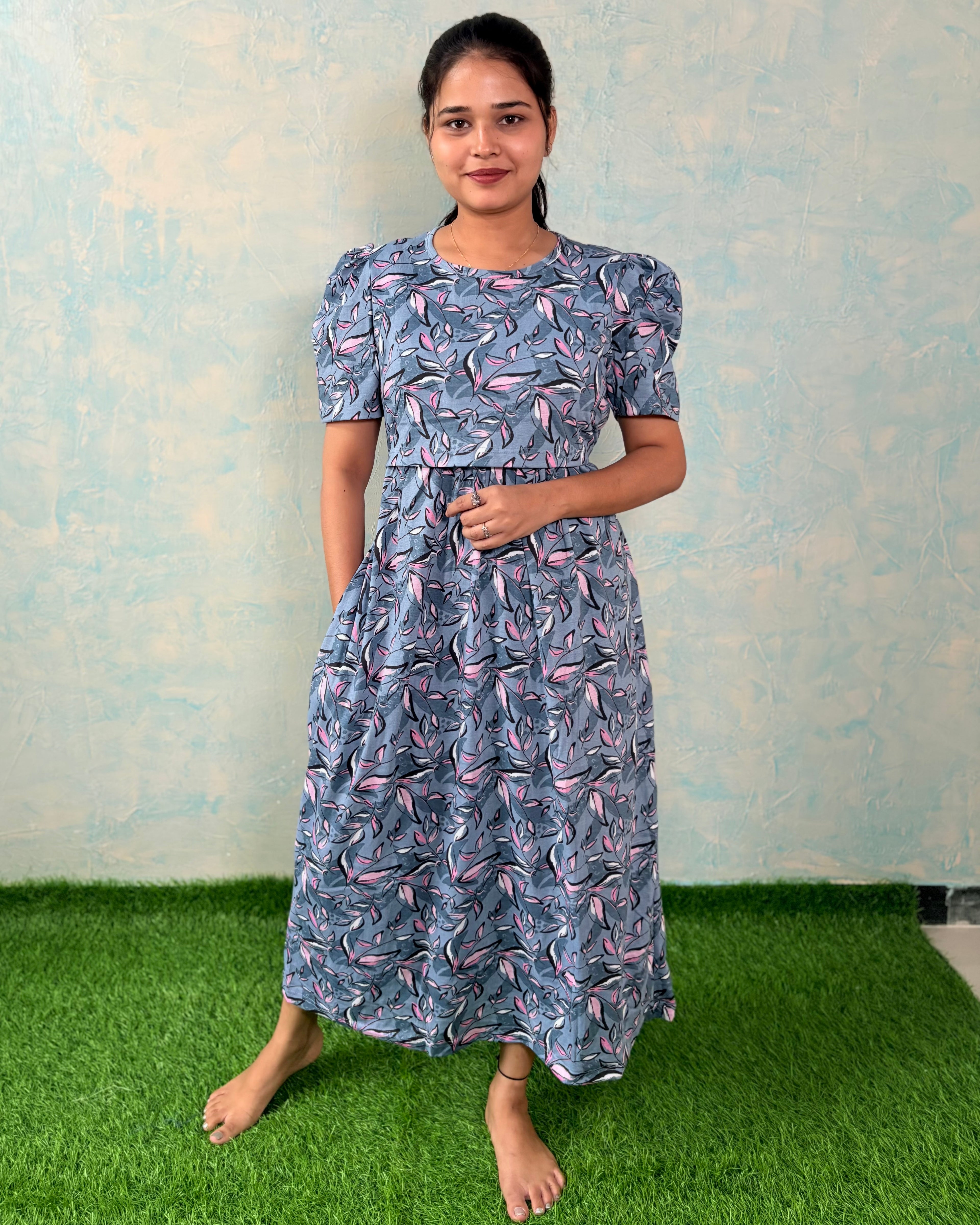 Inner feeding neck is V shape. Versatile & Stylish – Designed for both loungewear and casual outings, so you can wear it comfortably at home or when running errands. Length of the dress is 48 inches (+/-1 inch). There may be small variation in the colour due to photography and lighting effects.
