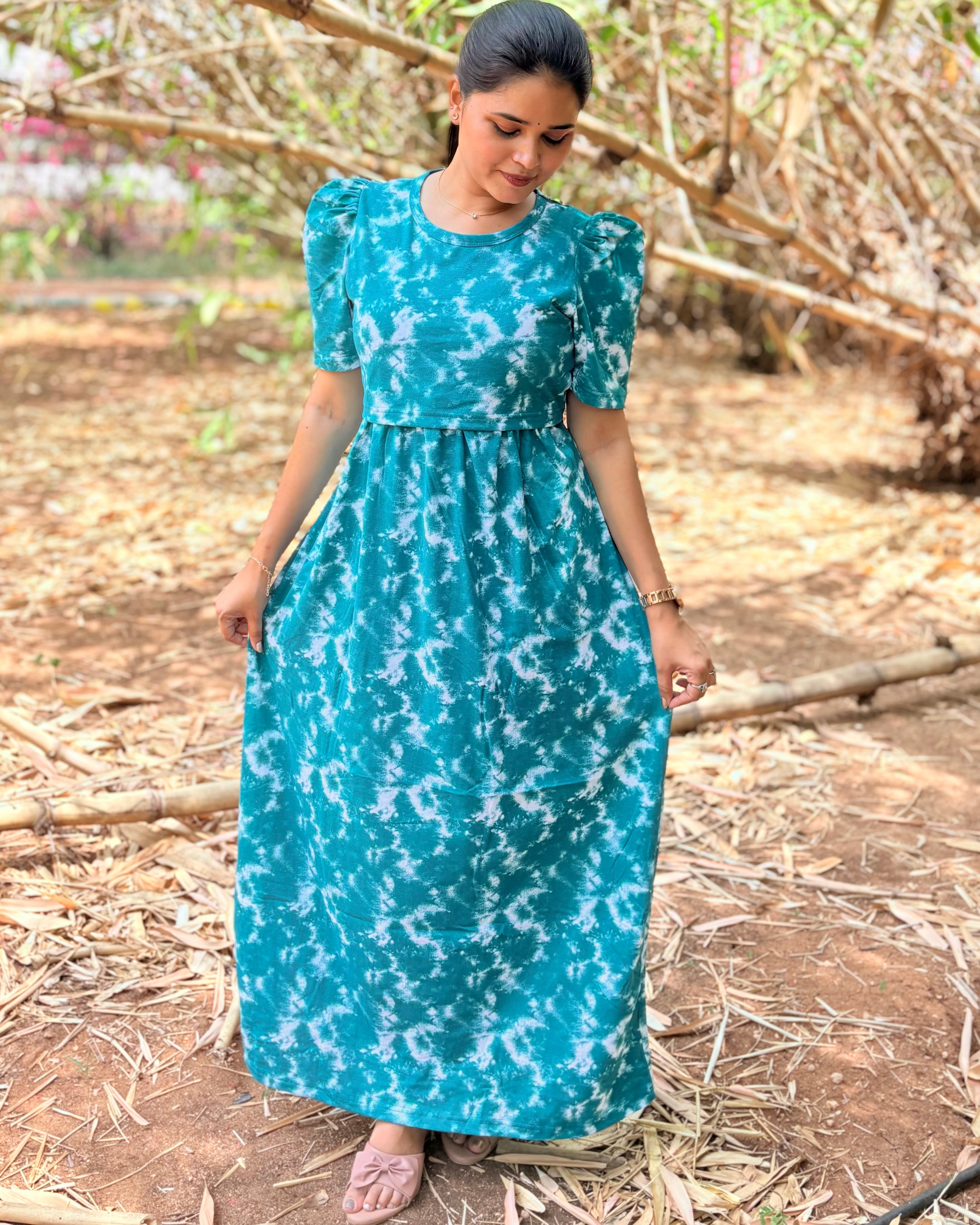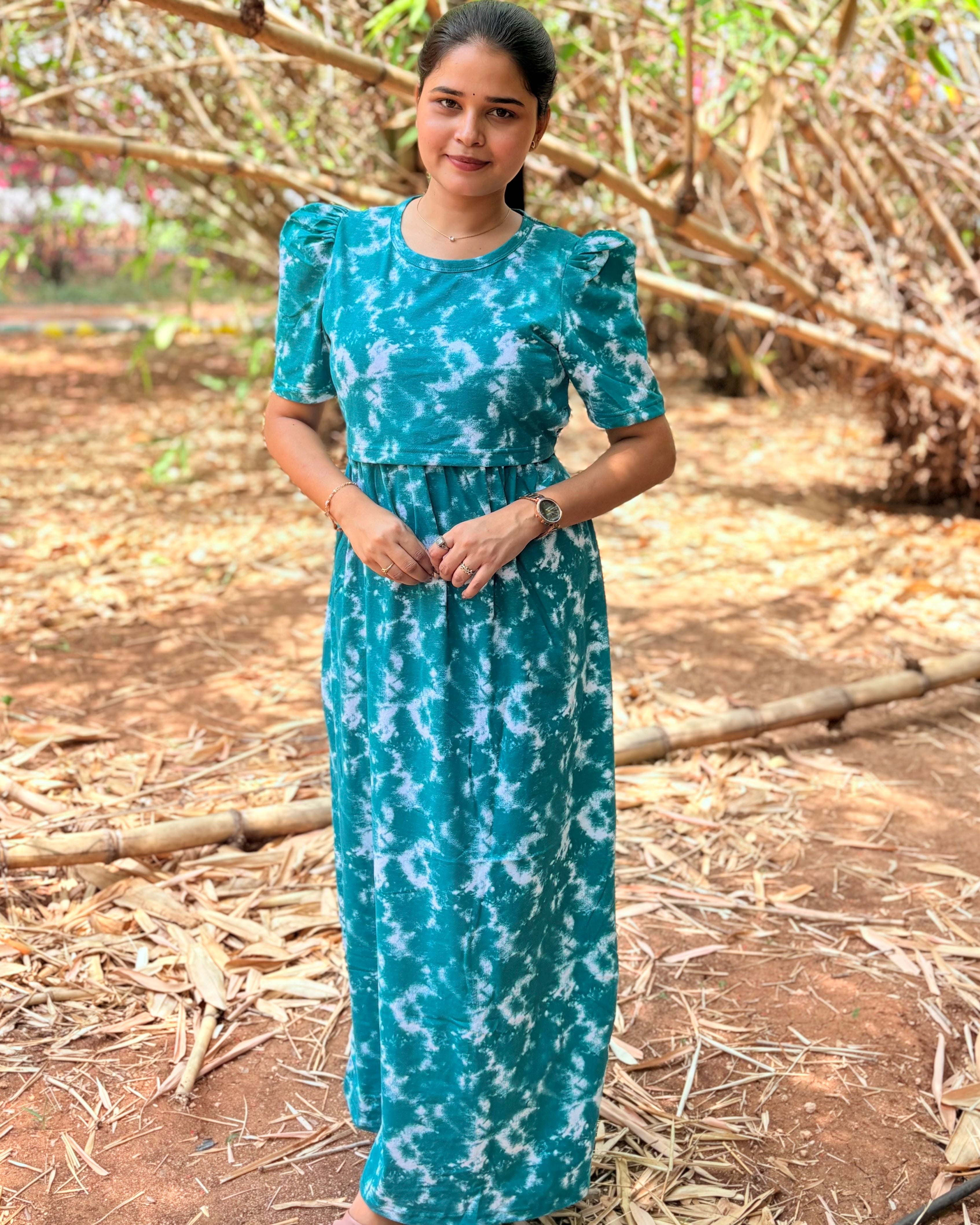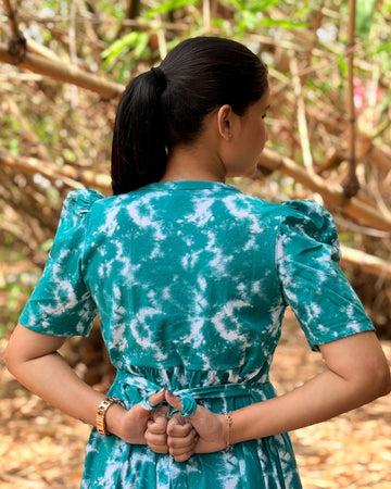 Note: The model in this image is 155cms (5'2 feet) tall wearing S size dress. If you have any doubts regarding size selection, whatsapp us on 8123029555, we will guide you an ideal fit. There may be small variation in the colour due to photography and lighting effects.