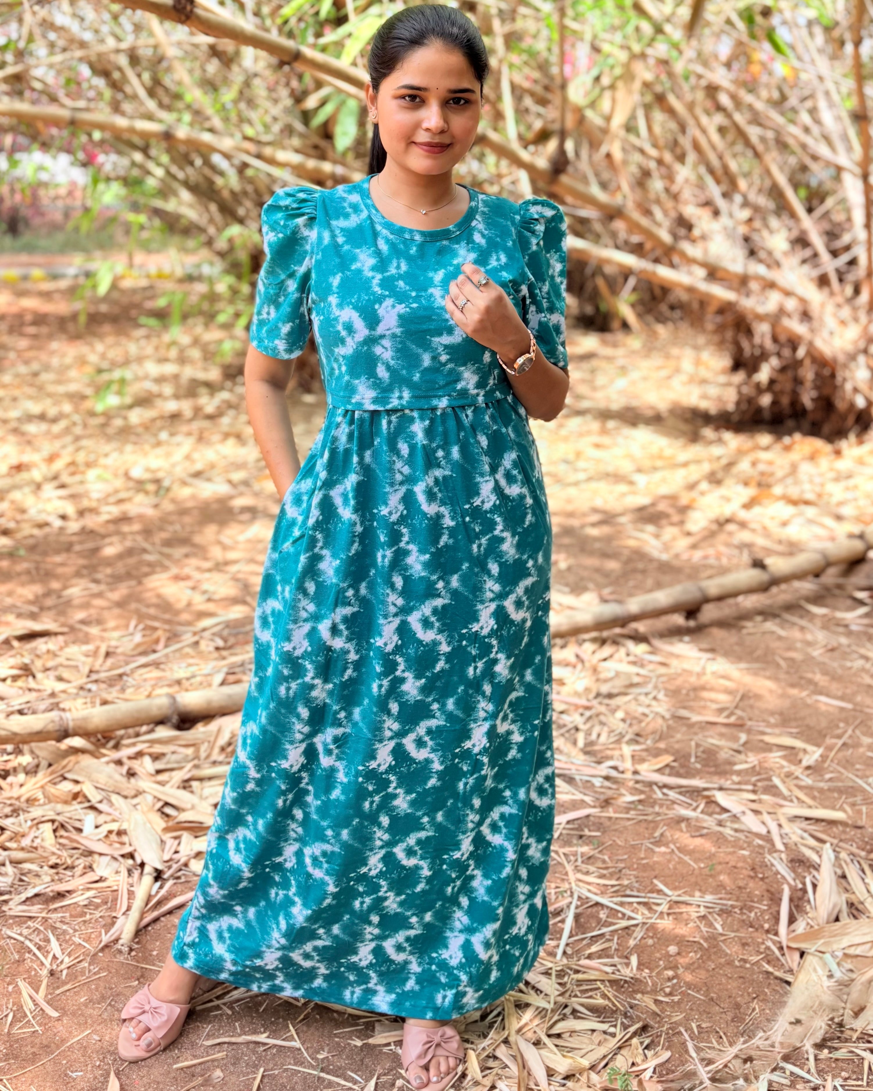 Our Zipless Maternity and Feeding Loungewear is designed for the modern mom who values both comfort and style during pregnancy, postpartum, and while nursing. The zipless design makes it easy to pull over and off, while the discreet nursing access ensures you can feed your baby comfortably with privacy. Comes with an adjustable rope knot and side pocket for mobile, so you can wear it comfortably at home or when running errands. Length of the dress is 52 inches (+/-1 inch).