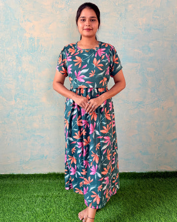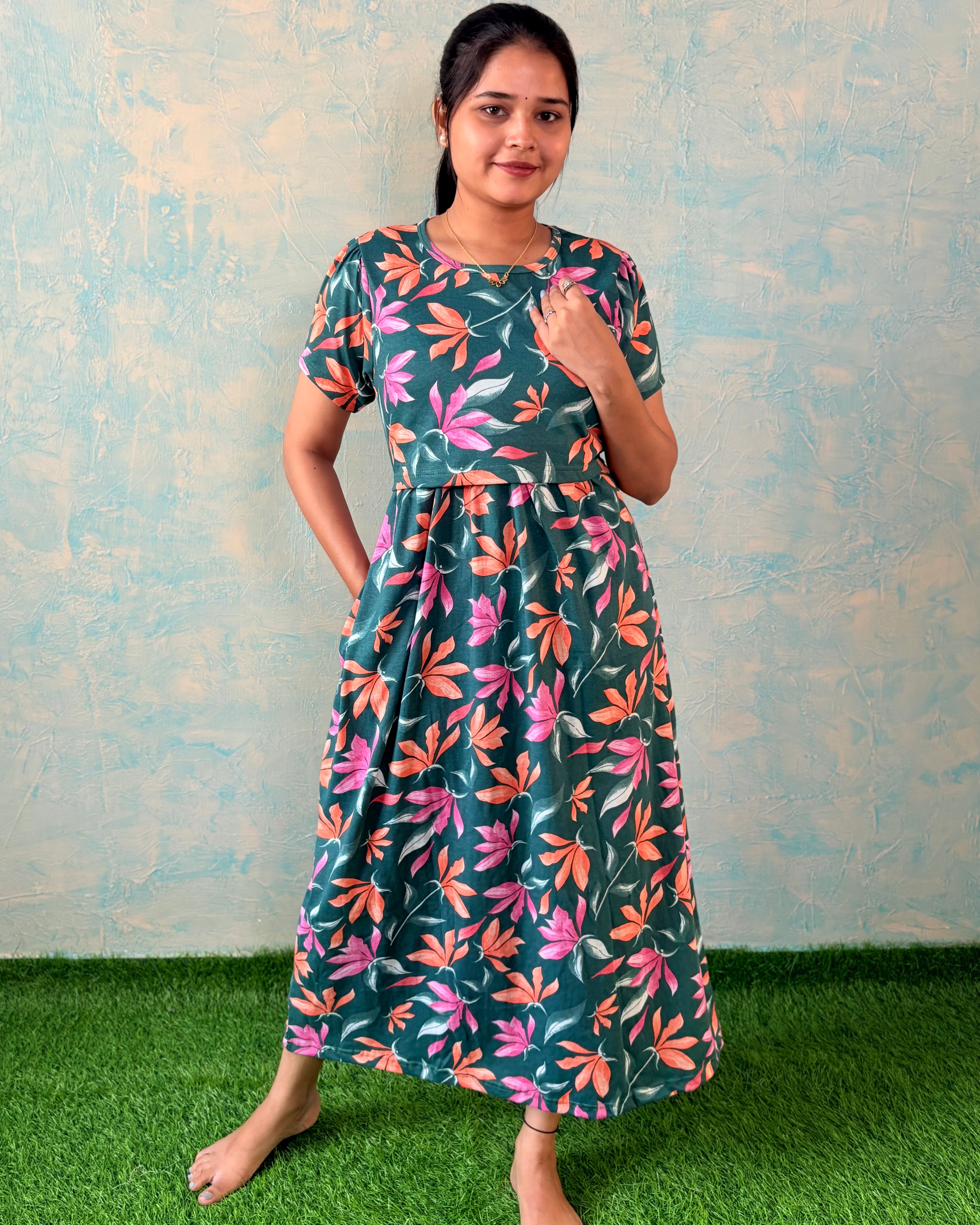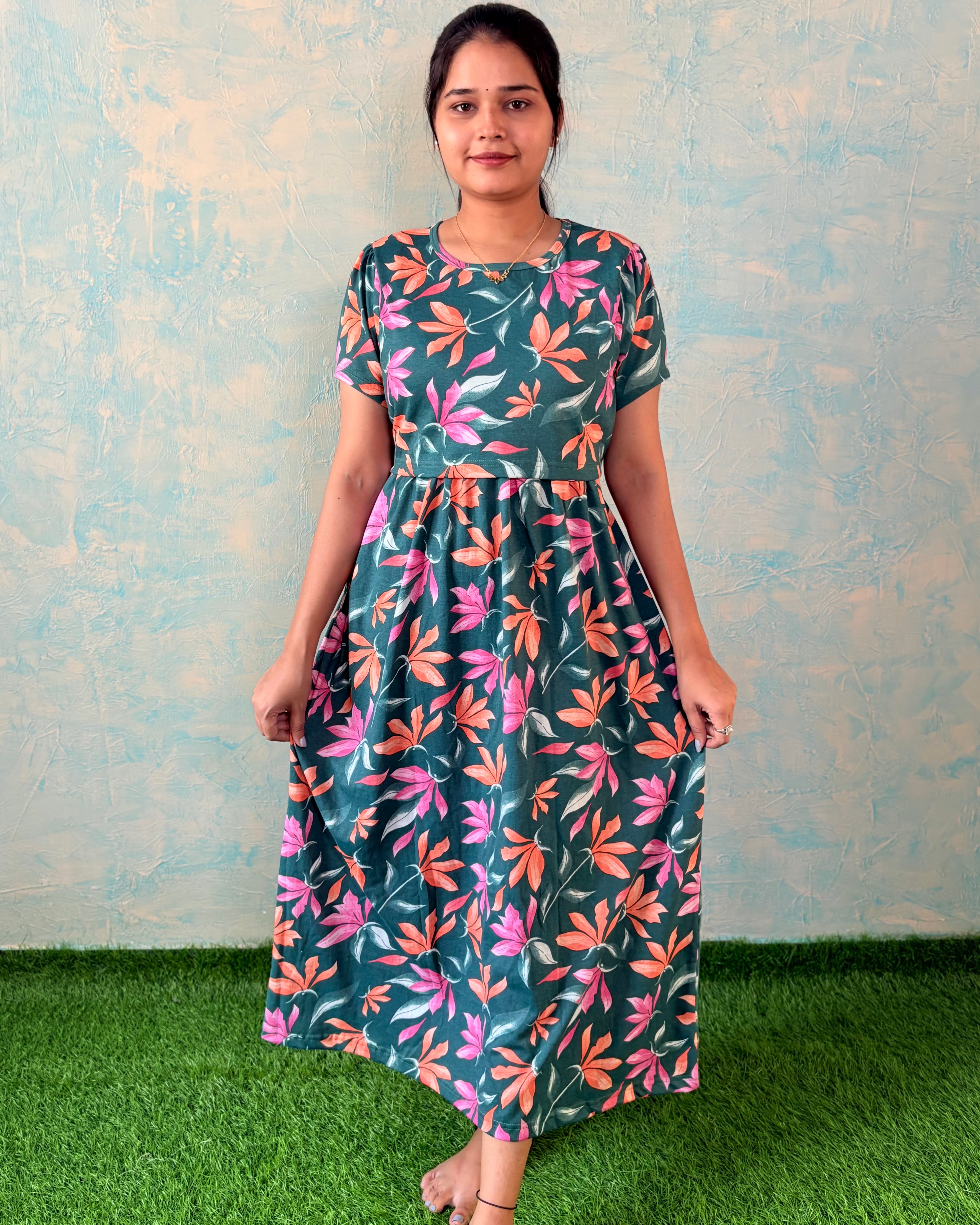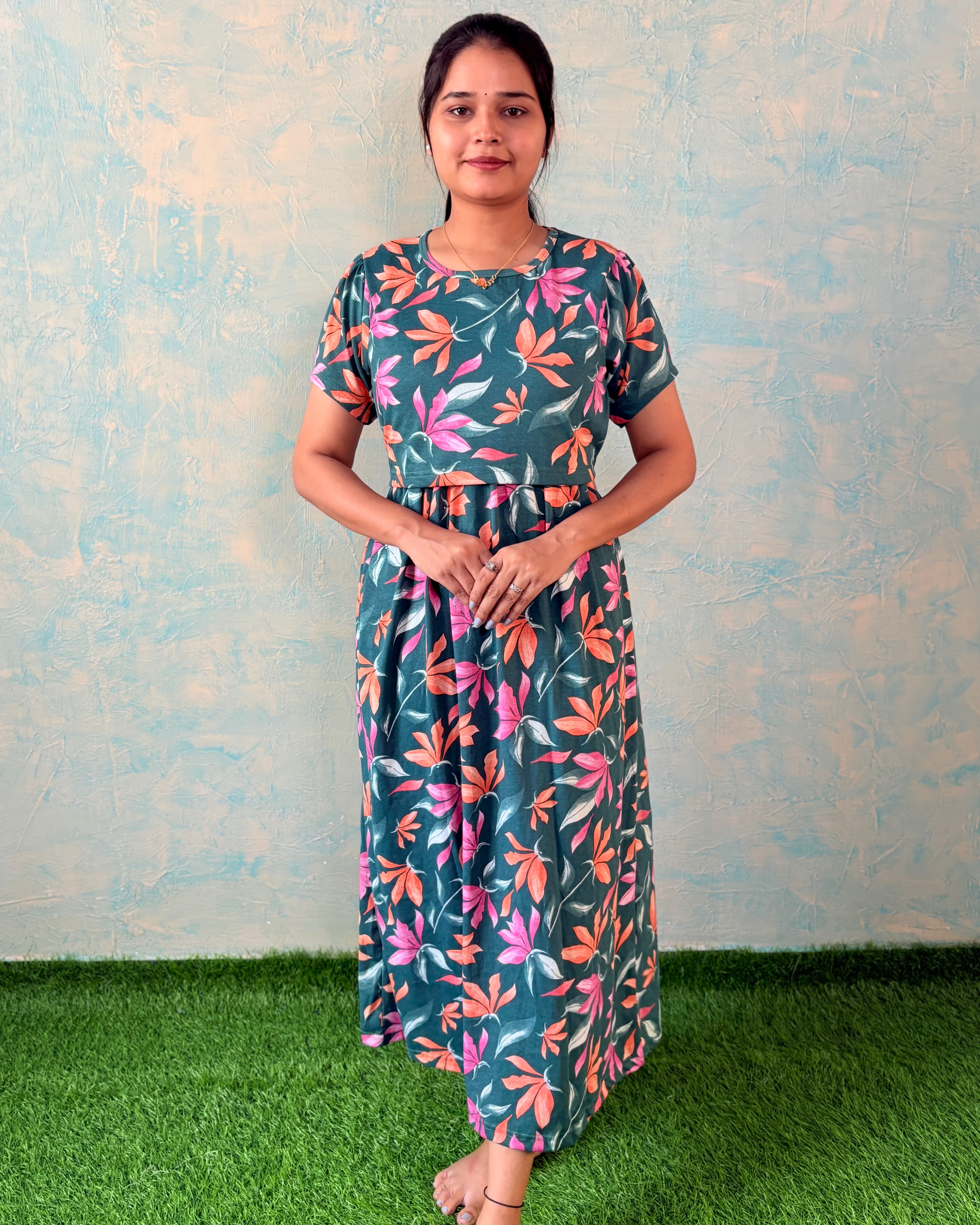 Inner feeding neck is V shape. Versatile & Stylish – Designed for both loungewear and casual outings, so you can wear it comfortably at home or when running errands. Length of the dress is 48 inches (+/-1 inch). There may be small variation in the colour due to photography and lighting effects.