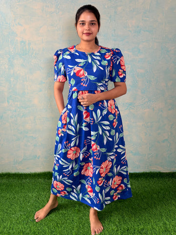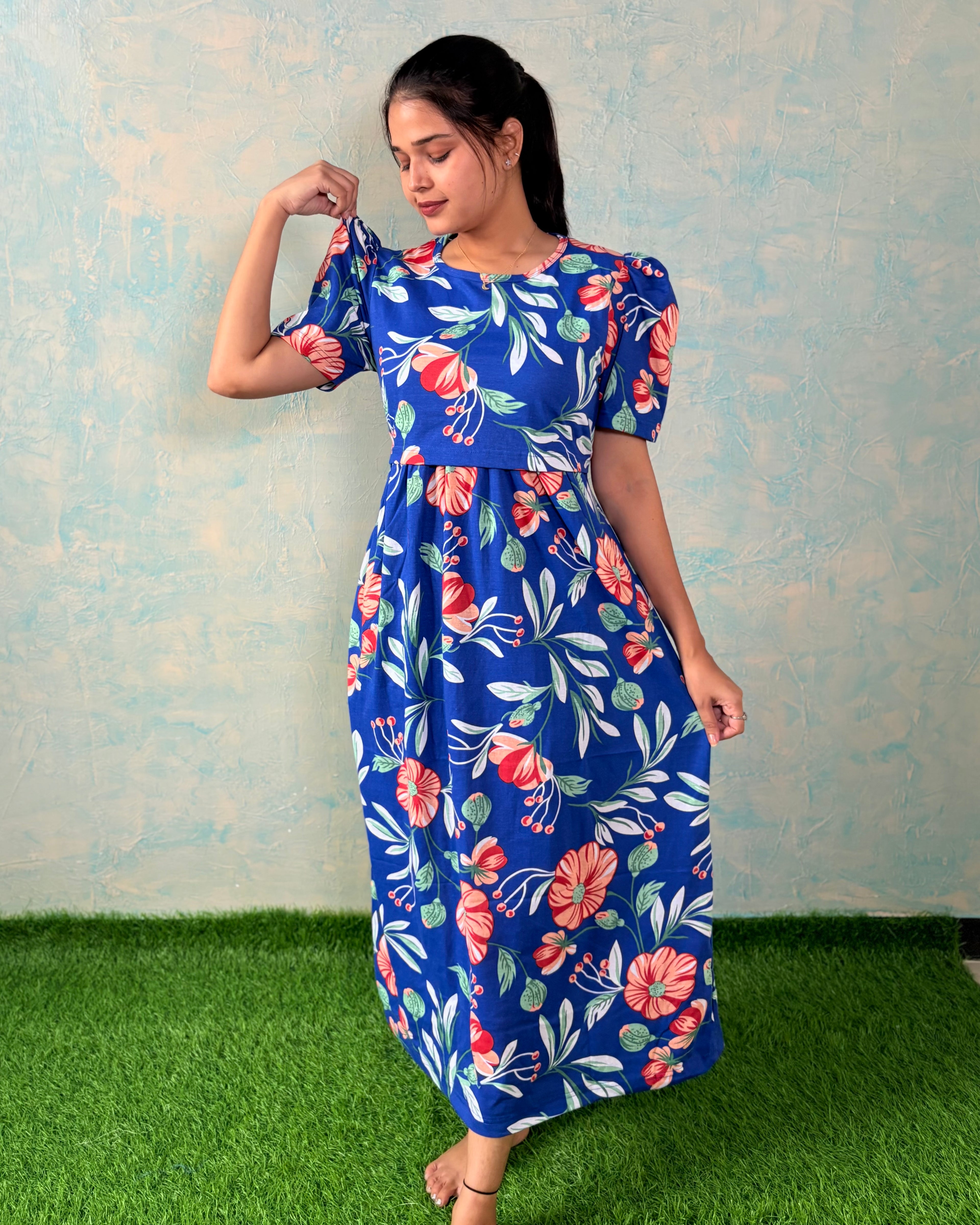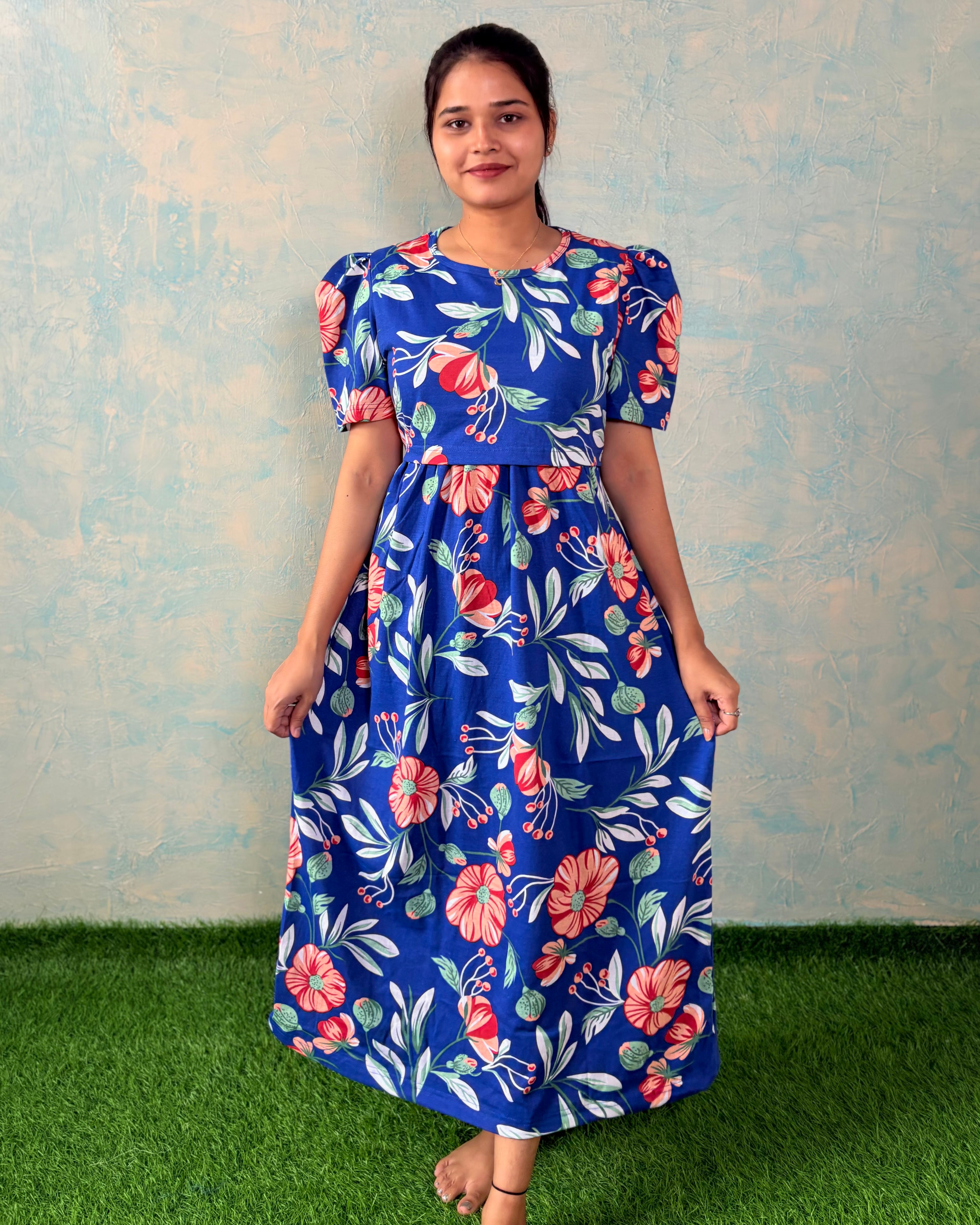 Inner feeding neck is V shape. Versatile & Stylish – Designed for both loungewear and casual outings, so you can wear it comfortably at home or when running errands. Length of the dress is 48 inches (+/-1 inch). There may be small variation in the colour due to photography and lighting effects.