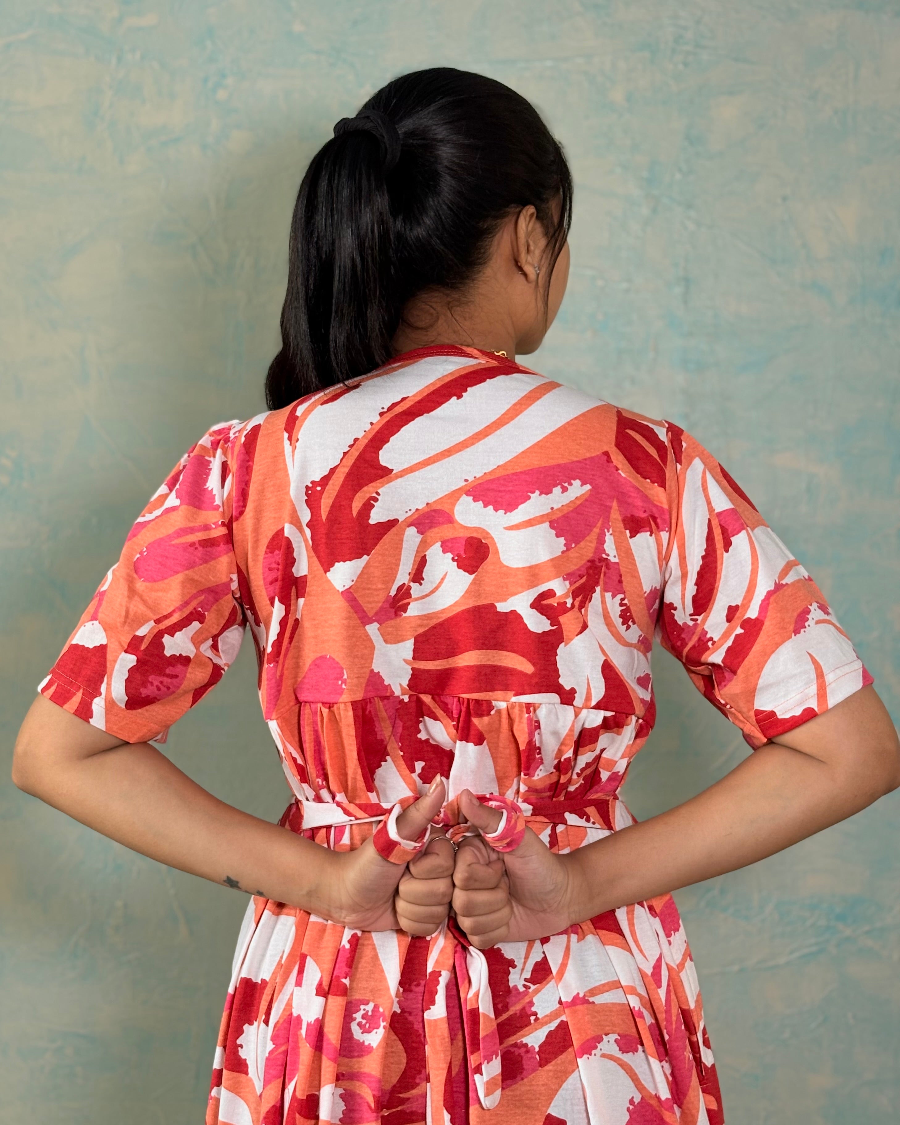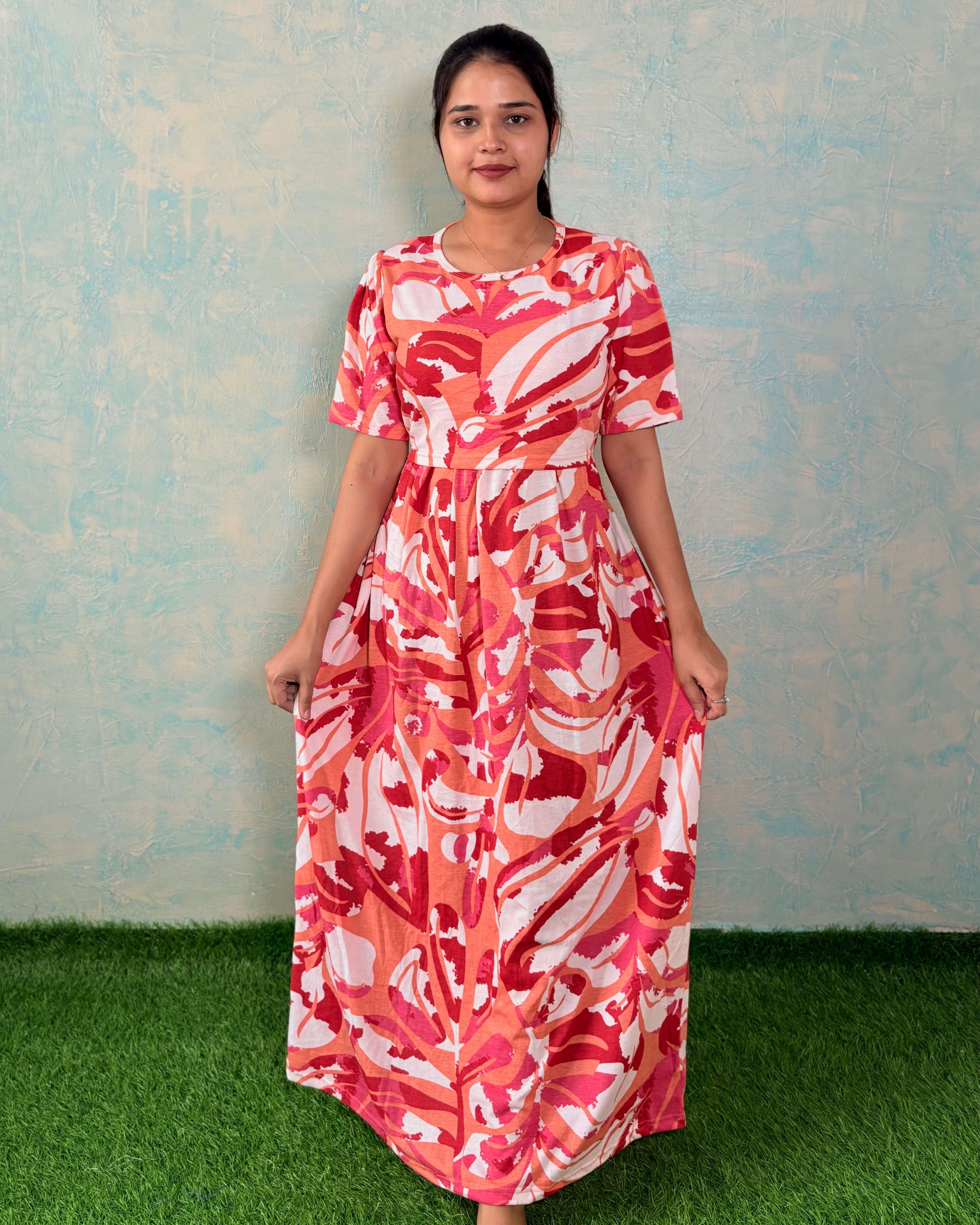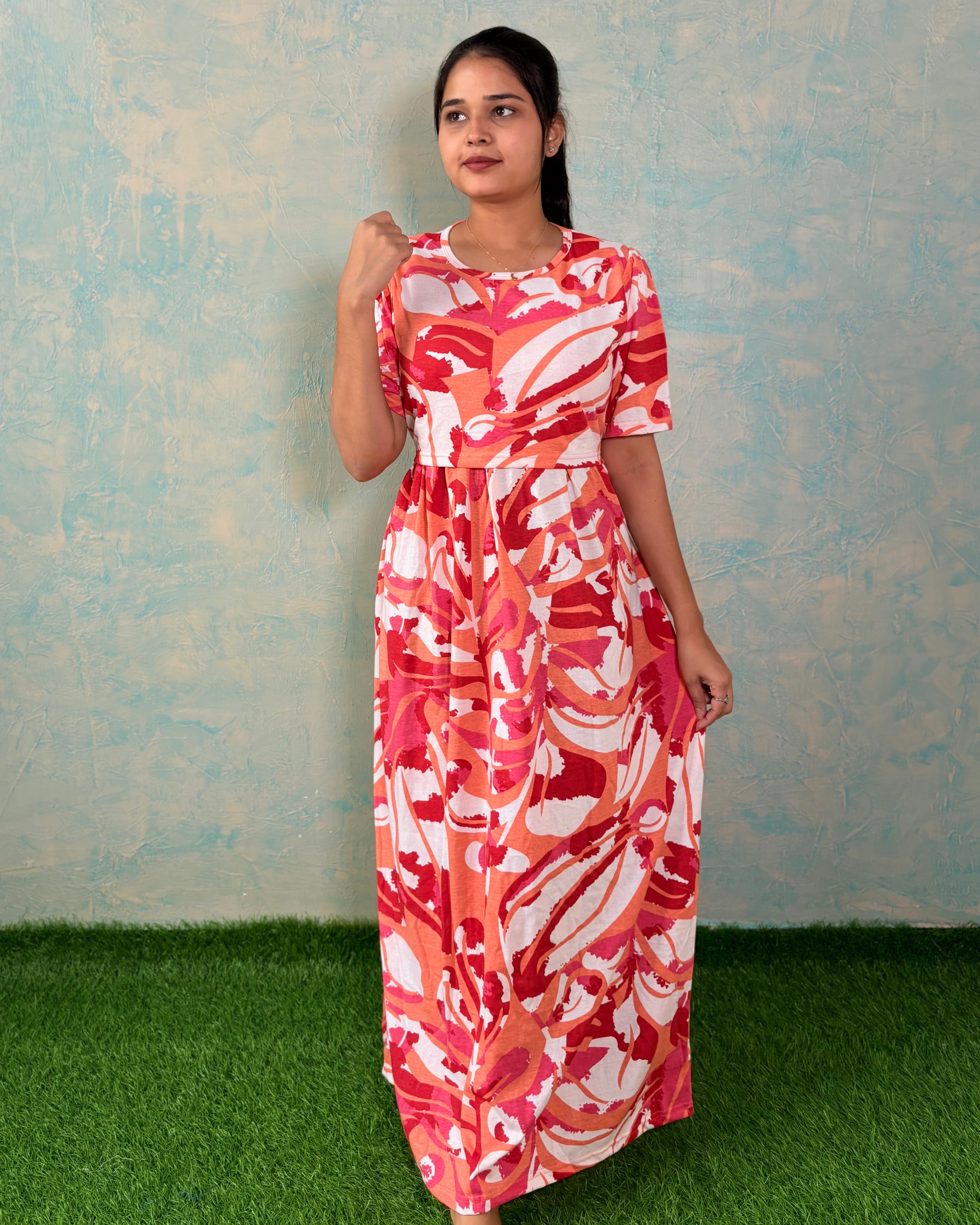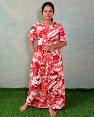 Inner feeding neck is V shape. Versatile & Stylish – Designed for both loungewear and casual outings, so you can wear it comfortably at home or when running errands. Length of the dress is 52 inches (+/-1 inch). There may be small variation in the colour due to photography and lighting effects.