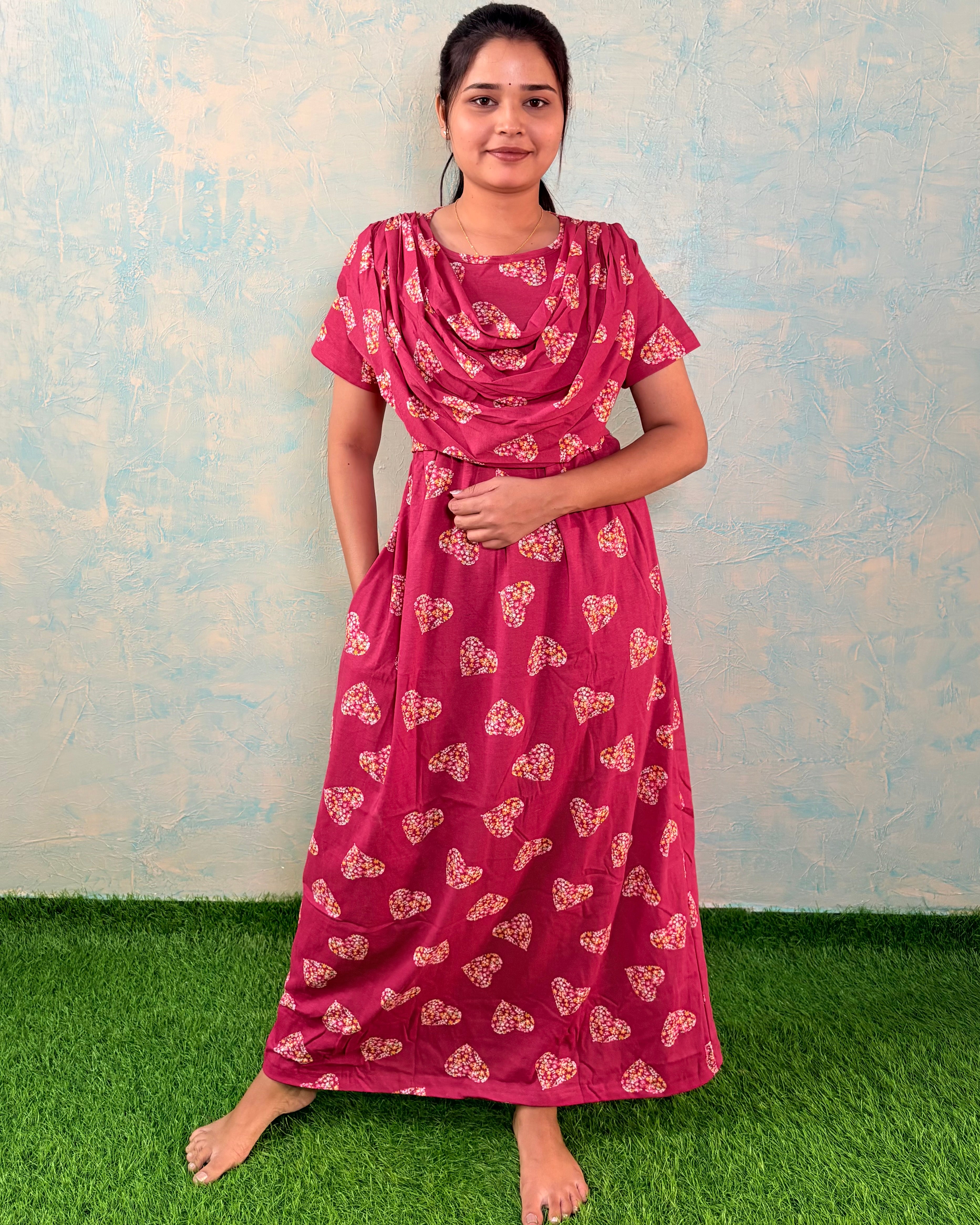 Stay stylish and comfortable through every stage of motherhood with our Zipless Maternity and Feeding Loungewear – now paired with a soft attached matching shawl for added coverage and elegance.