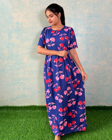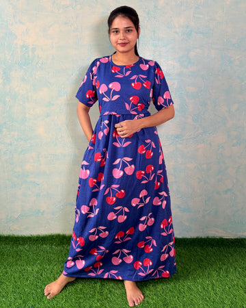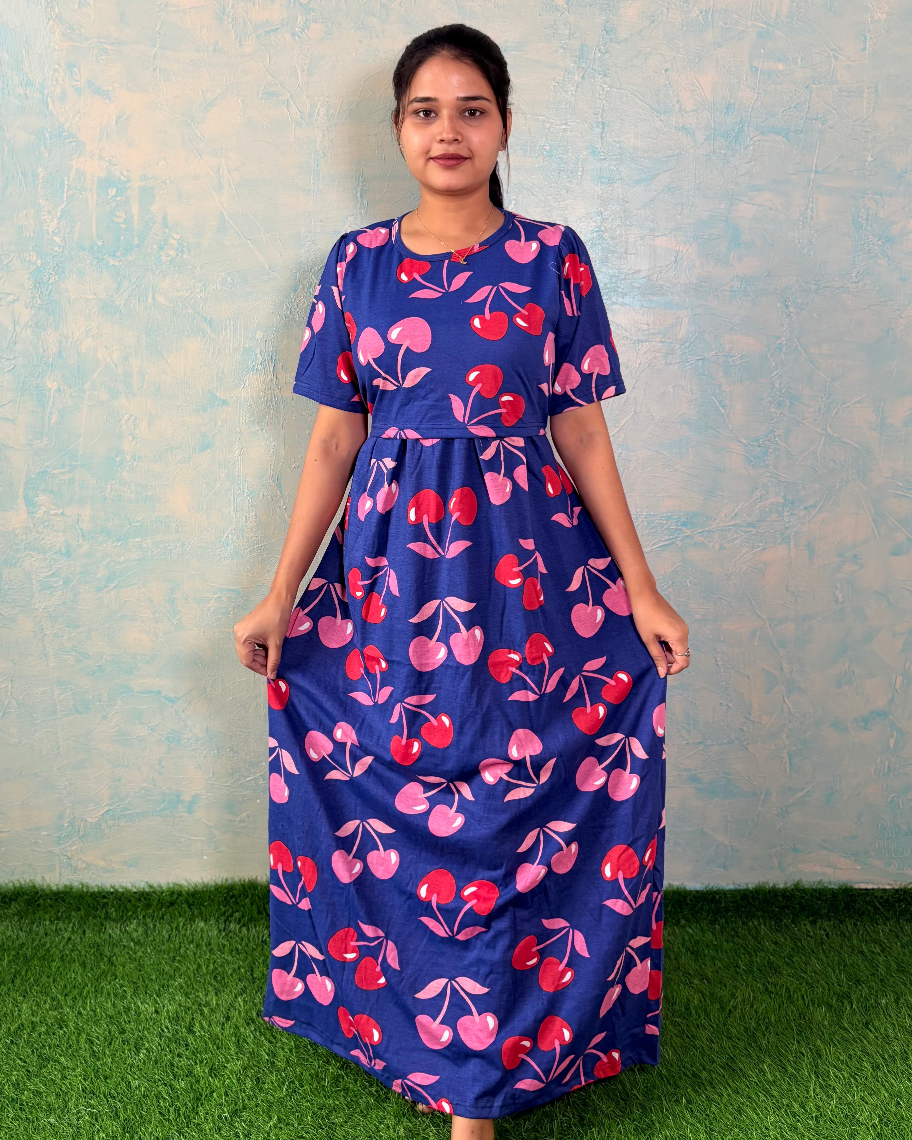 Inner feeding neck is V shape. Versatile & Stylish – Designed for both loungewear and casual outings, so you can wear it comfortably at home or when running errands. Length of the dress is 52 inches (+/-1 inch). There may be small variation in the colour due to photography and lighting effects.