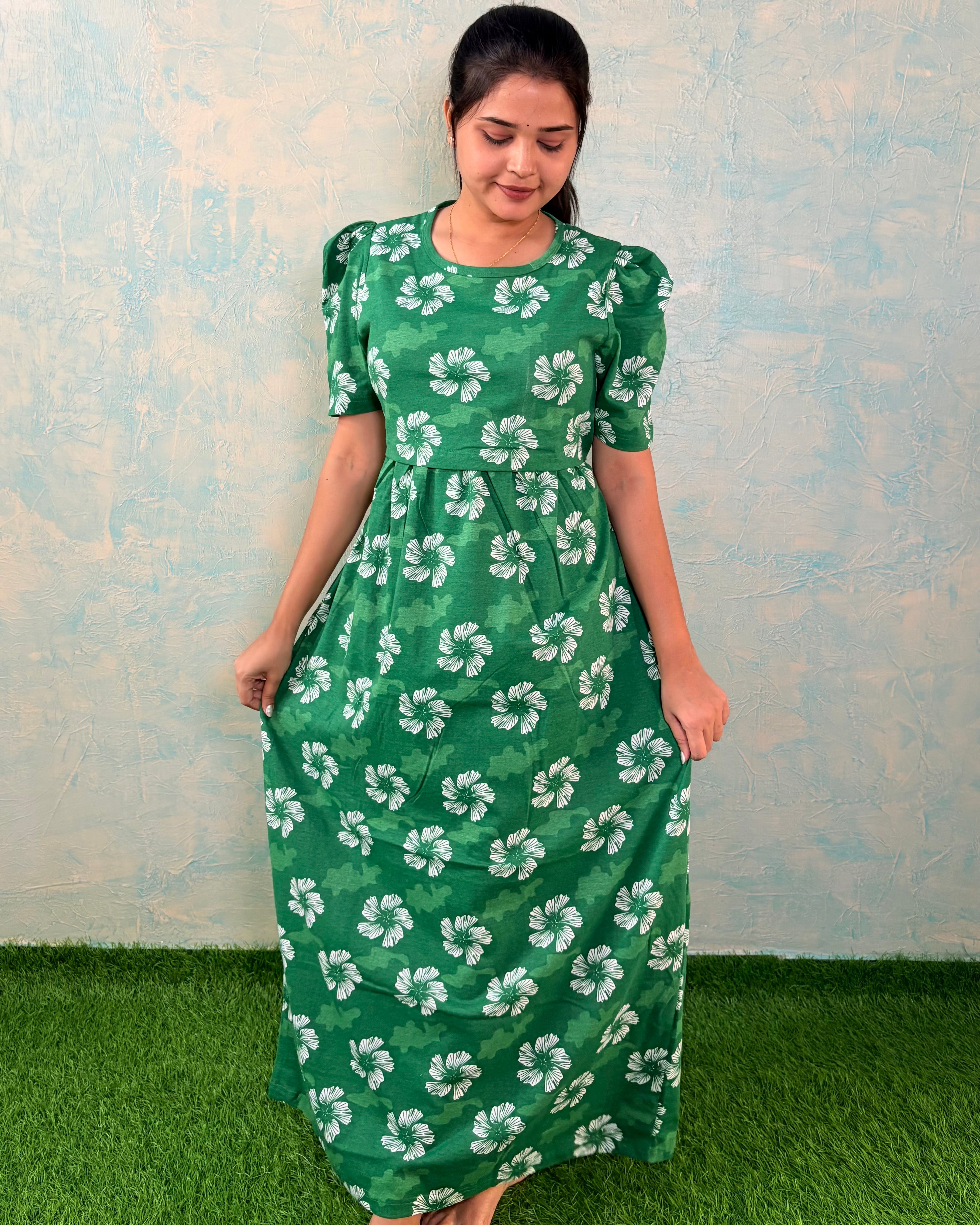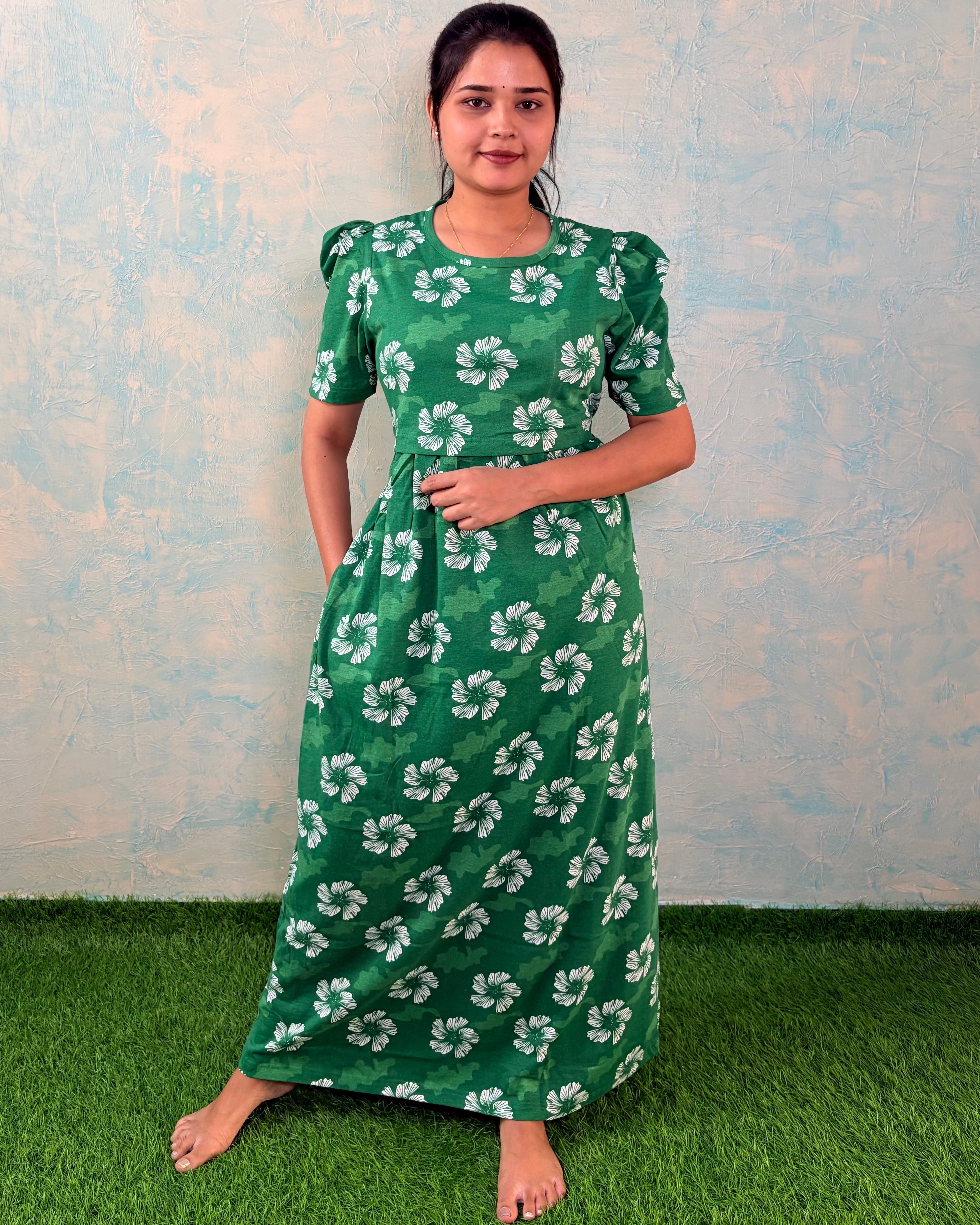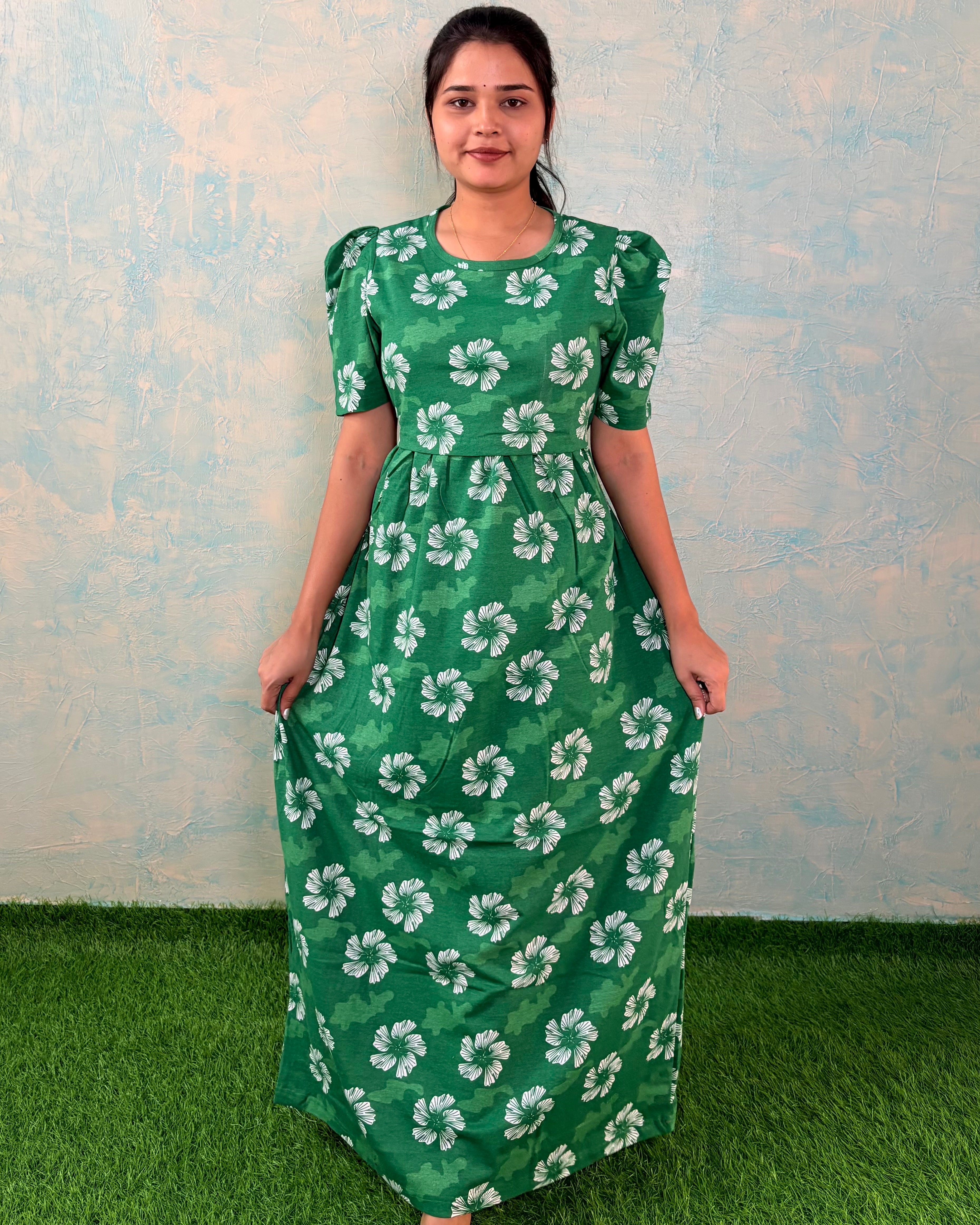 Inner feeding neck is V shape. Versatile & Stylish – Designed for both loungewear and casual outings, so you can wear it comfortably at home or when running errands. Length of the dress is 52 inches (+/-1 inch). There may be small variation in the colour due to photography and lighting effects.