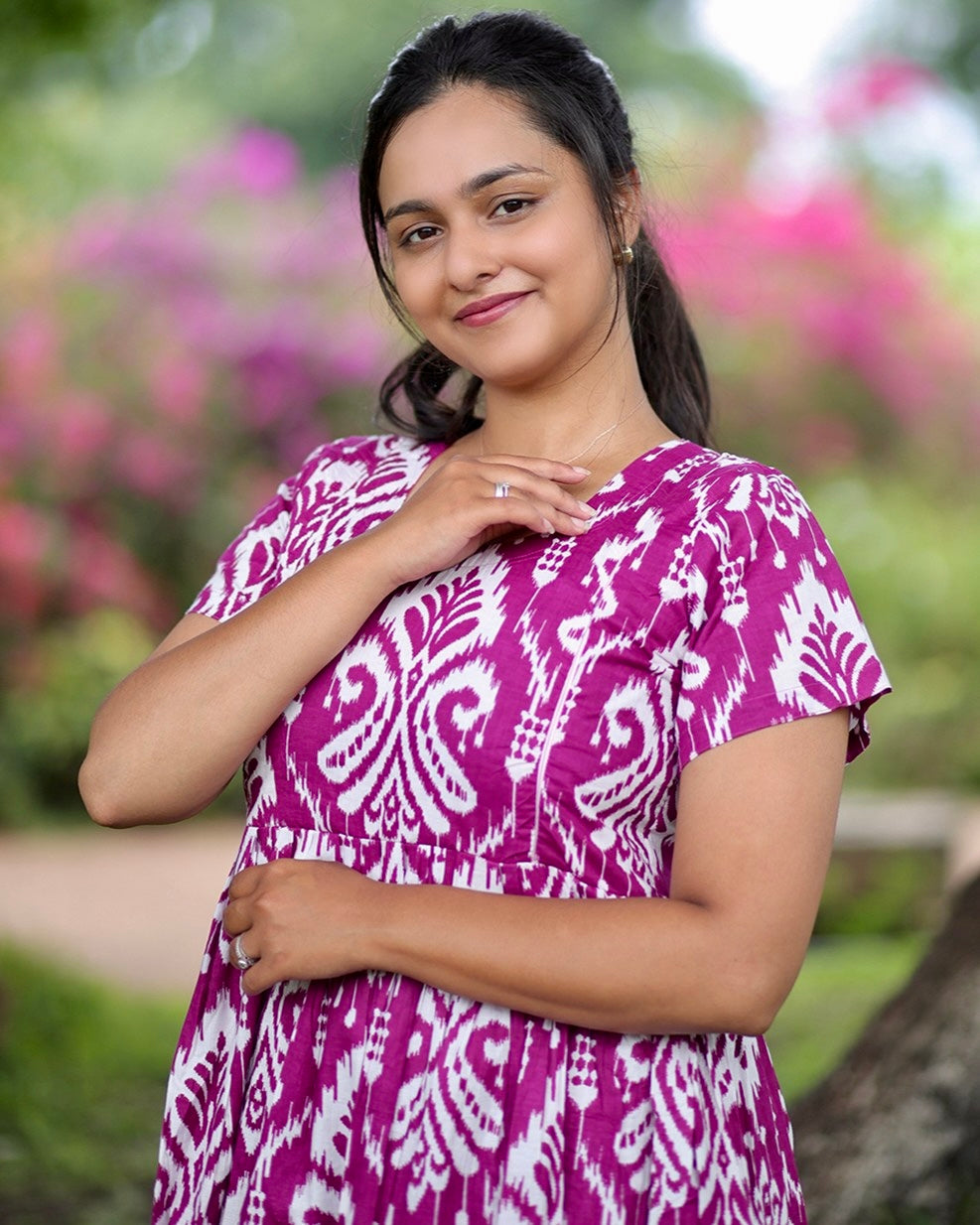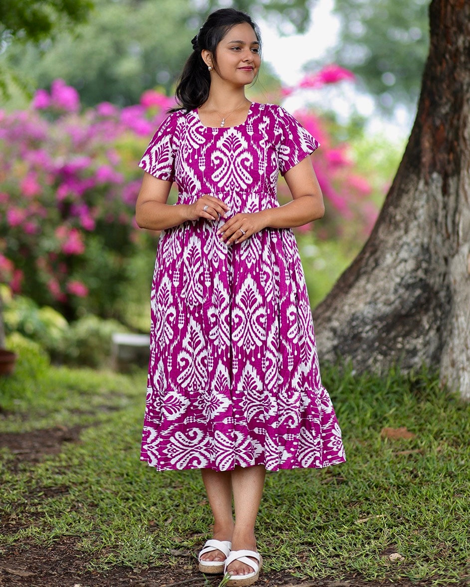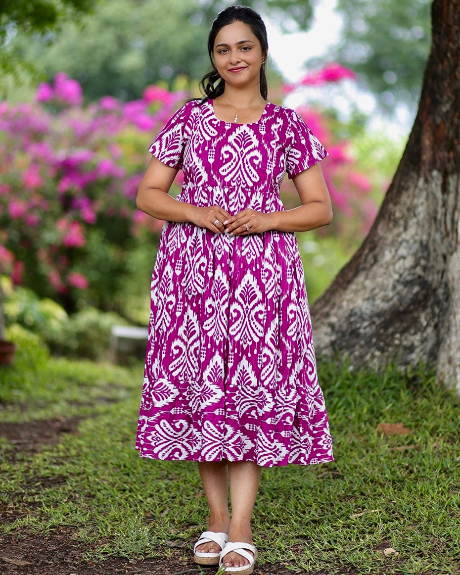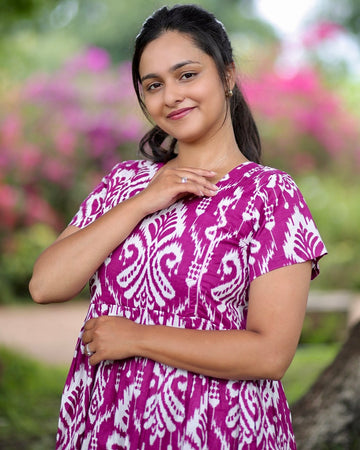 Maternity & feeding gown is crafted from premium 100% Jaipur cotton with full lining for a soft, comfy feel