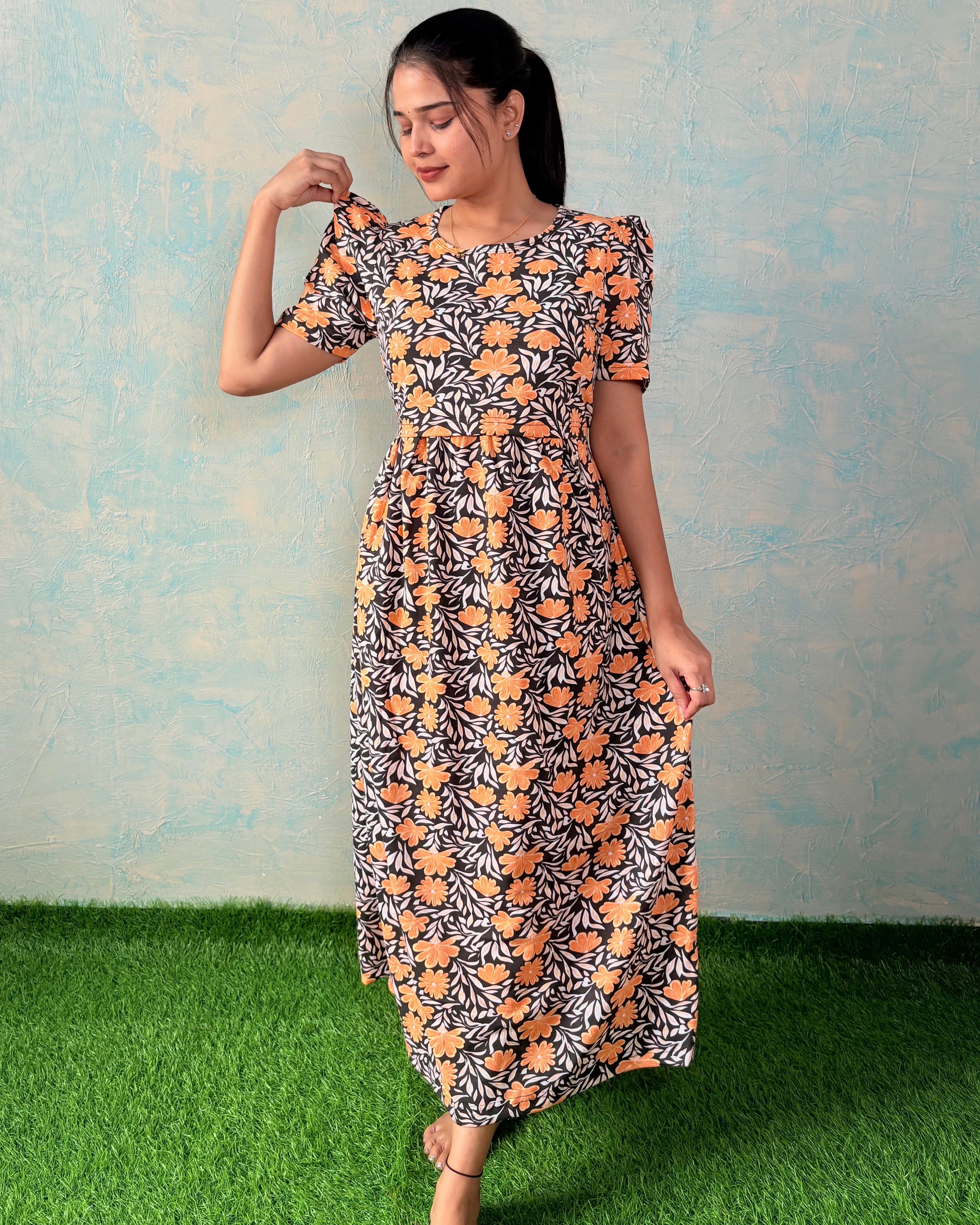 Inner feeding neck is V shape. Versatile & Stylish – Designed for both loungewear and casual outings, so you can wear it comfortably at home or when running errands. Length of the dress is 48 inches (+/-1 inch). There may be small variation in the colour due to photography and lighting effects.