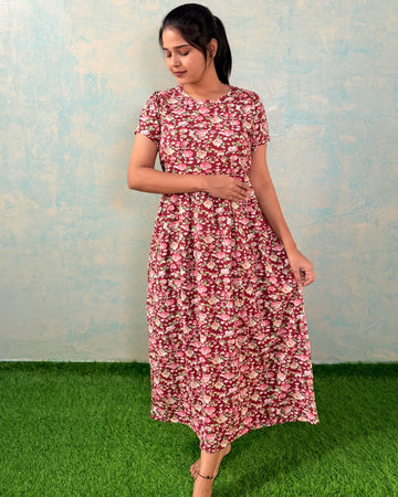 Inner feeding neck is V shape. Versatile & Stylish – Designed for both loungewear and casual outings, so you can wear it comfortably at home or when running errands. Length of the dress is 48 inches (+/-1 inch). There may be small variation in the colour due to photography and lighting effects.