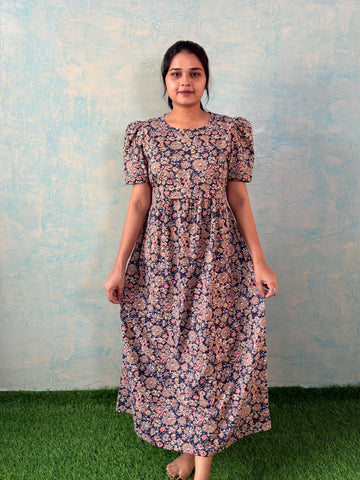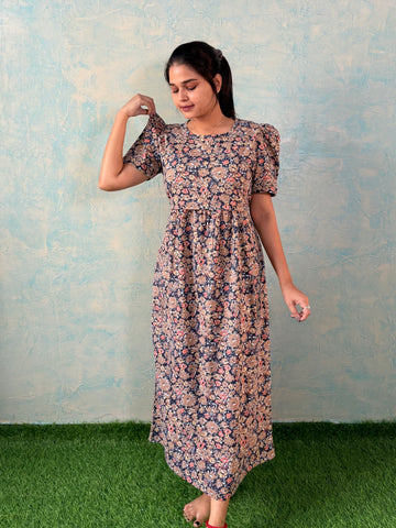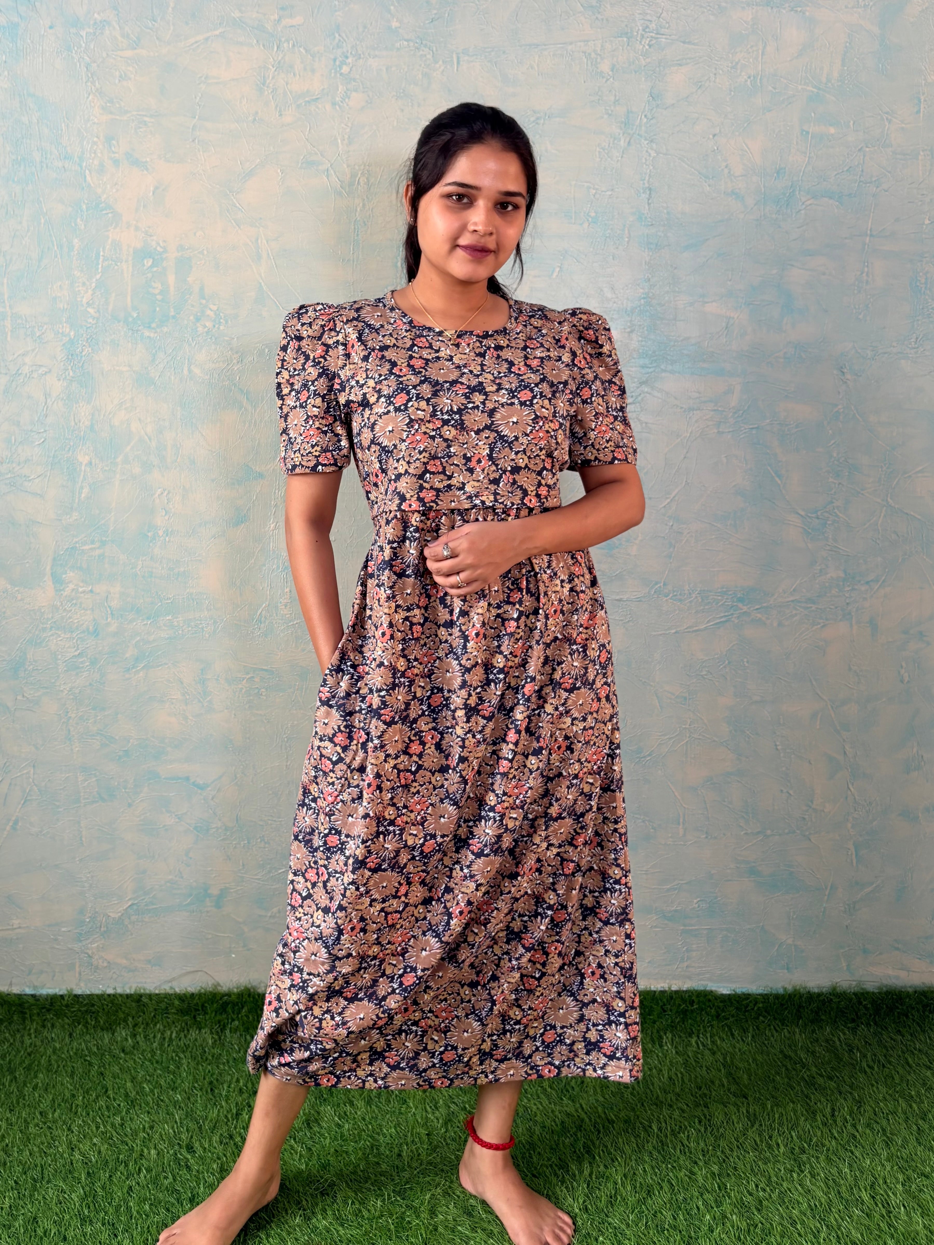 Inner feeding neck is V shape. Versatile & Stylish – Designed for both loungewear and casual outings, so you can wear it comfortably at home or when running errands. Mild colour fade is normal as we don't use synthetic dyes in the interest of Mom and baby's health. Length of the dress is 48 inches (+/-1 inch). There may be a small variation in the colour due to photography and lighting effects.