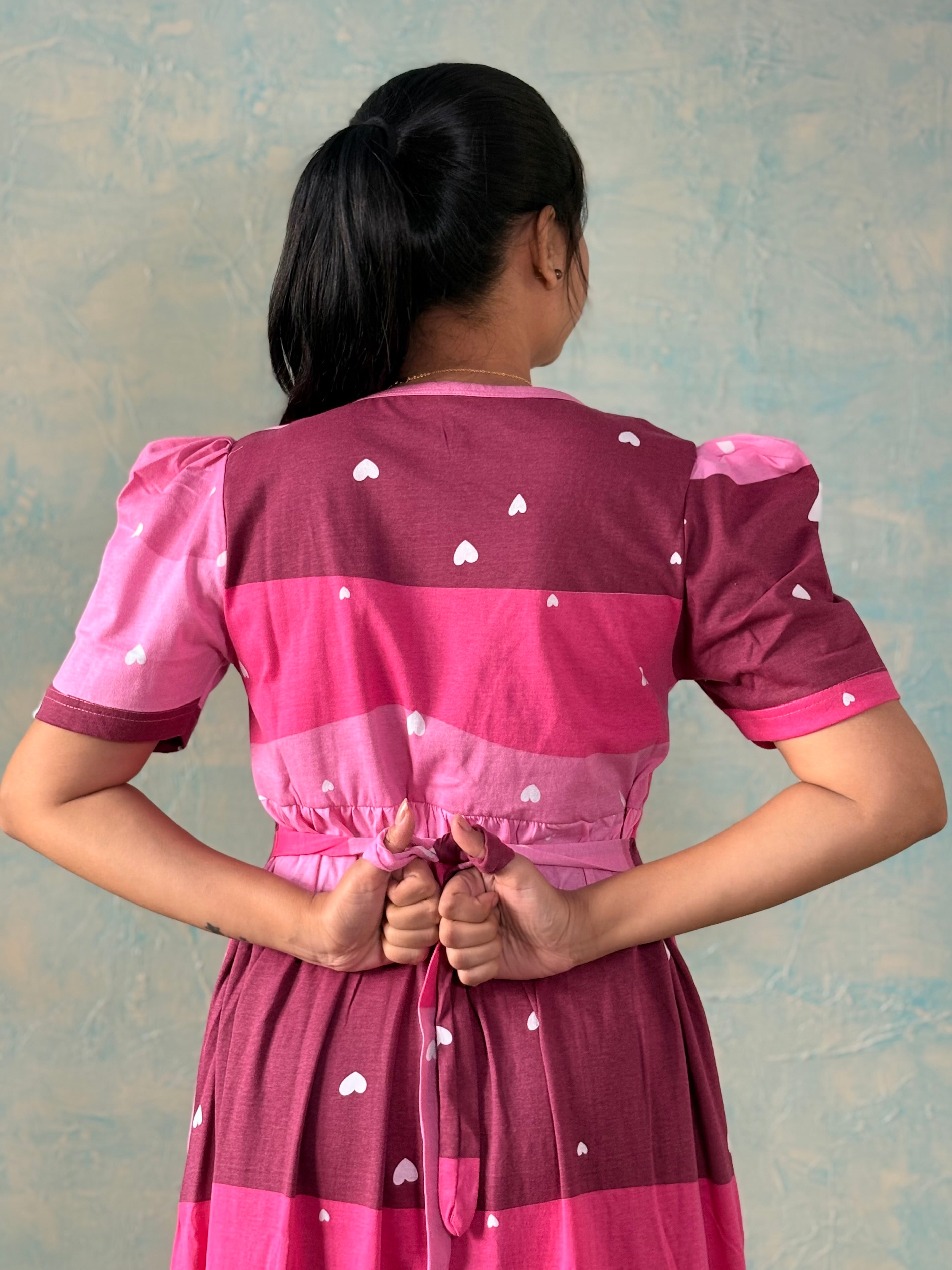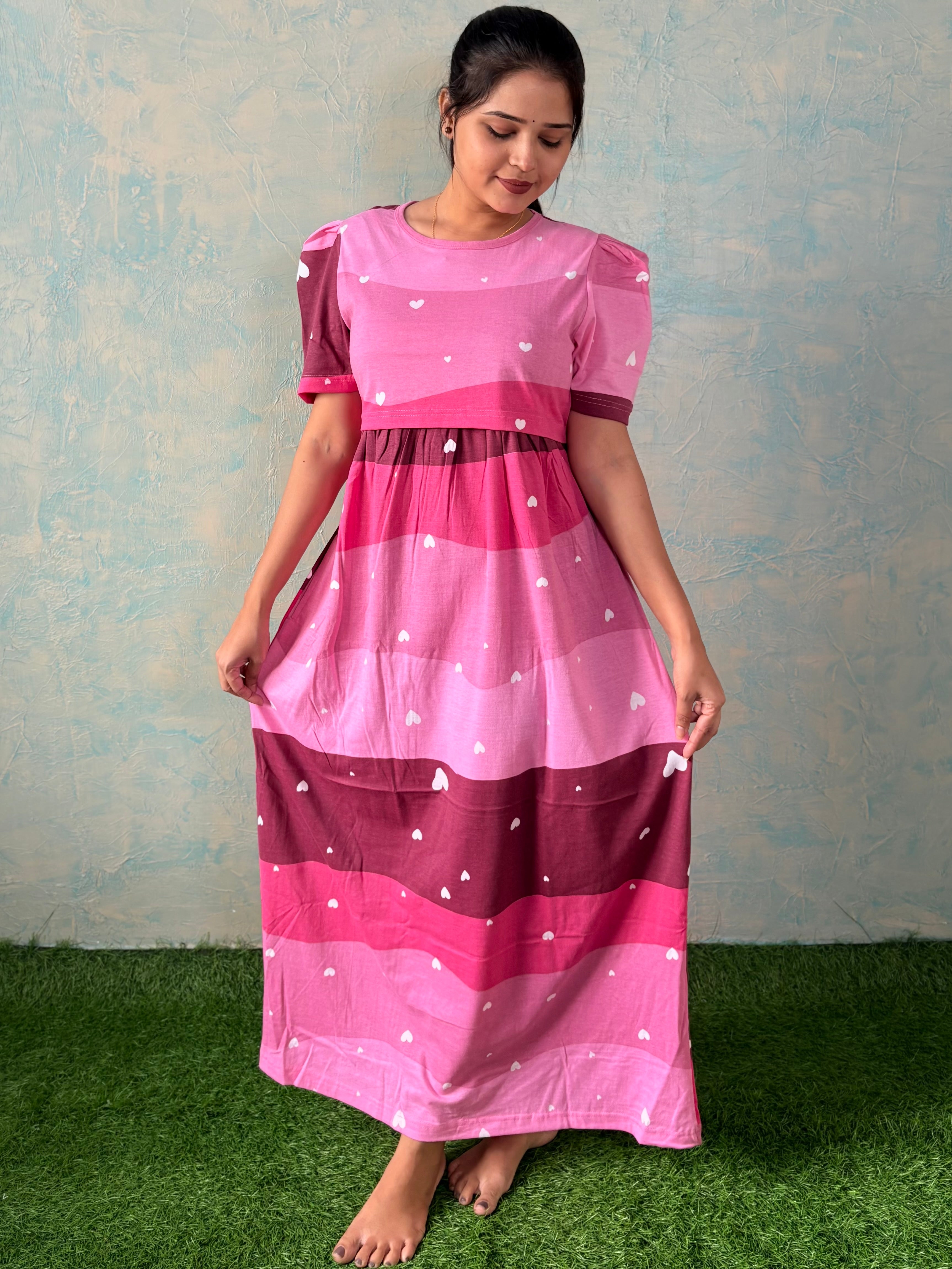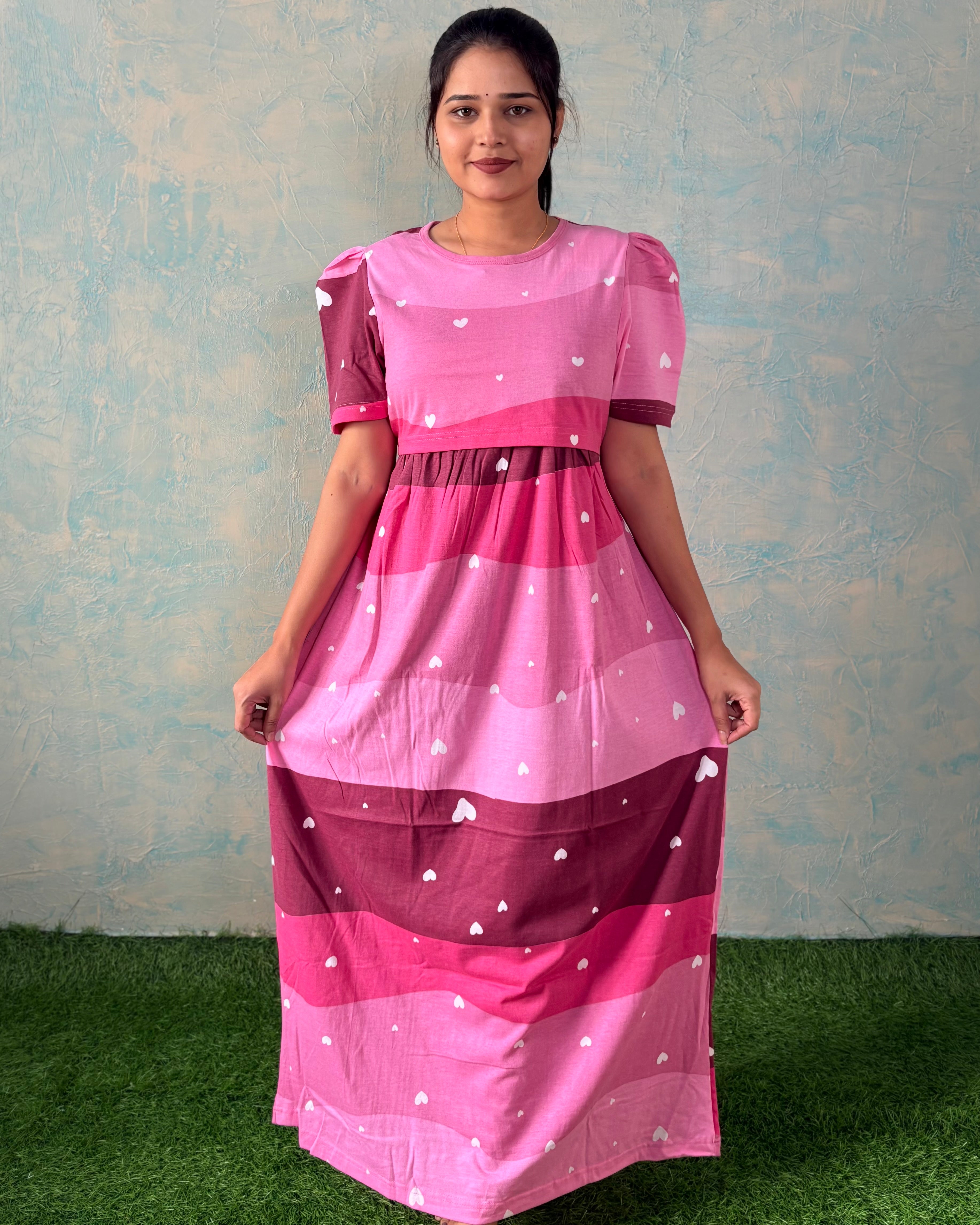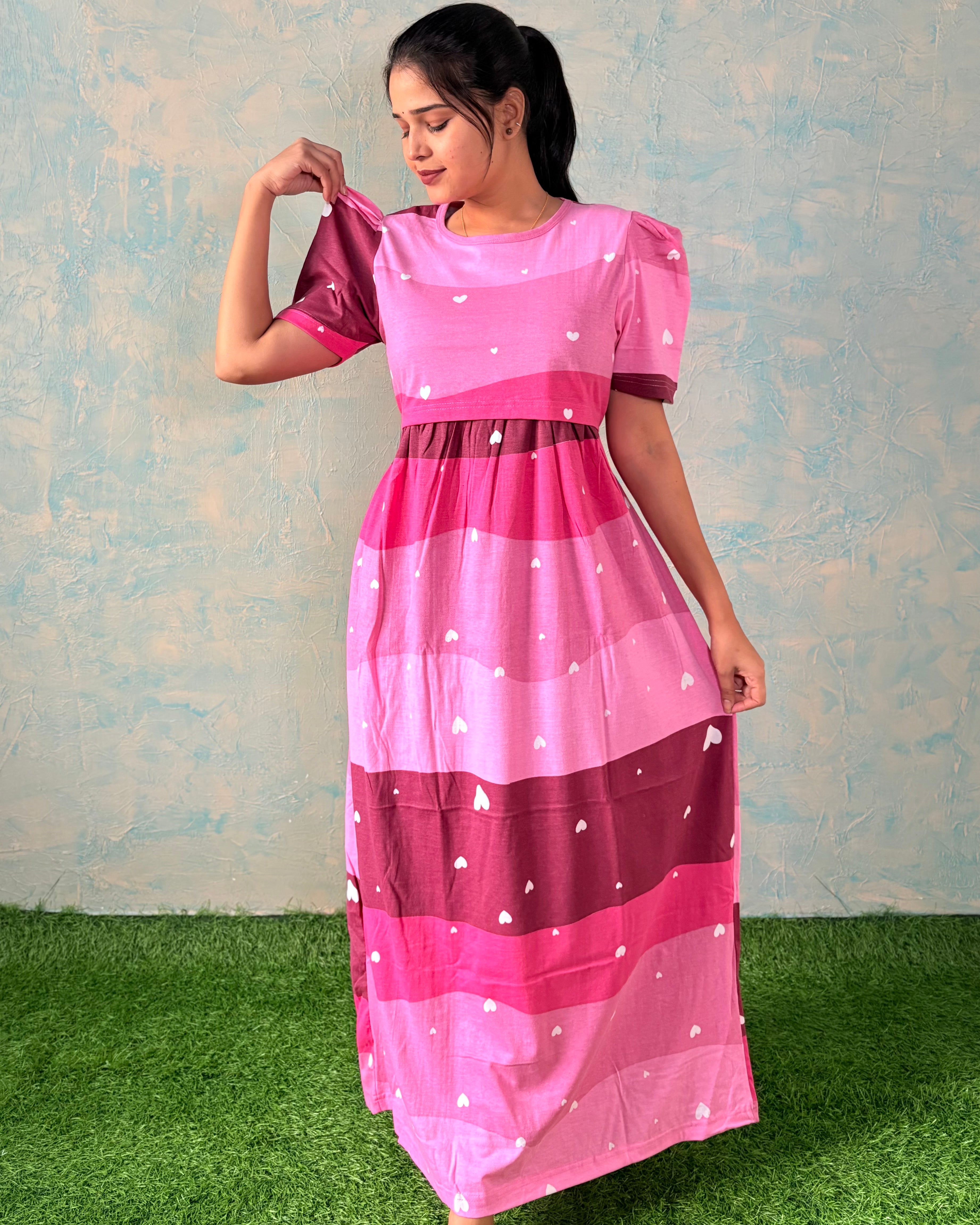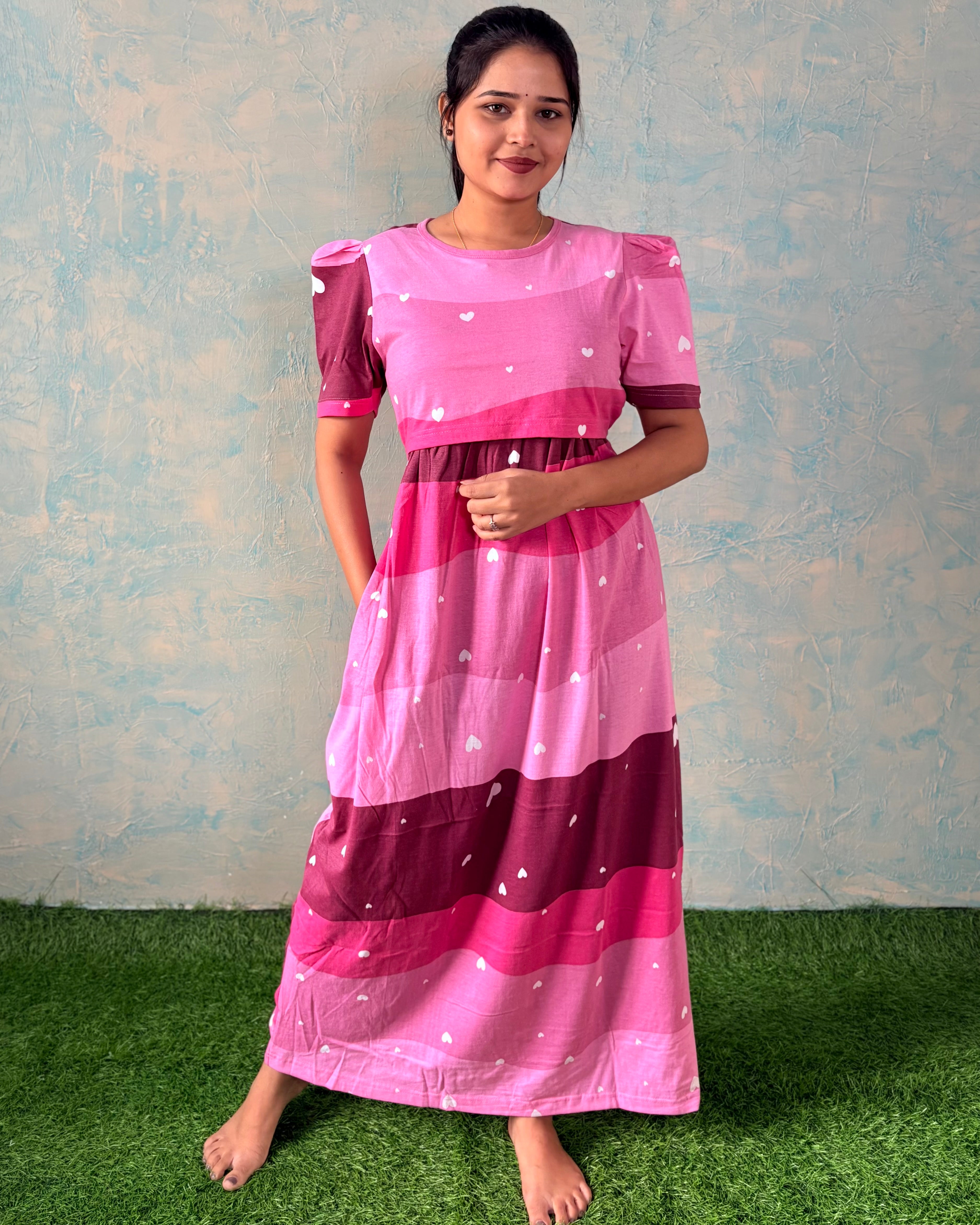 Inner feeding neck is V shape. Versatile & Stylish – Designed for both loungewear and casual outings, so you can wear it comfortably at home or when running errands. Length of the dress is 52 inches (+/-1 inch). There may be small variation in the colour due to photography and lighting effects.