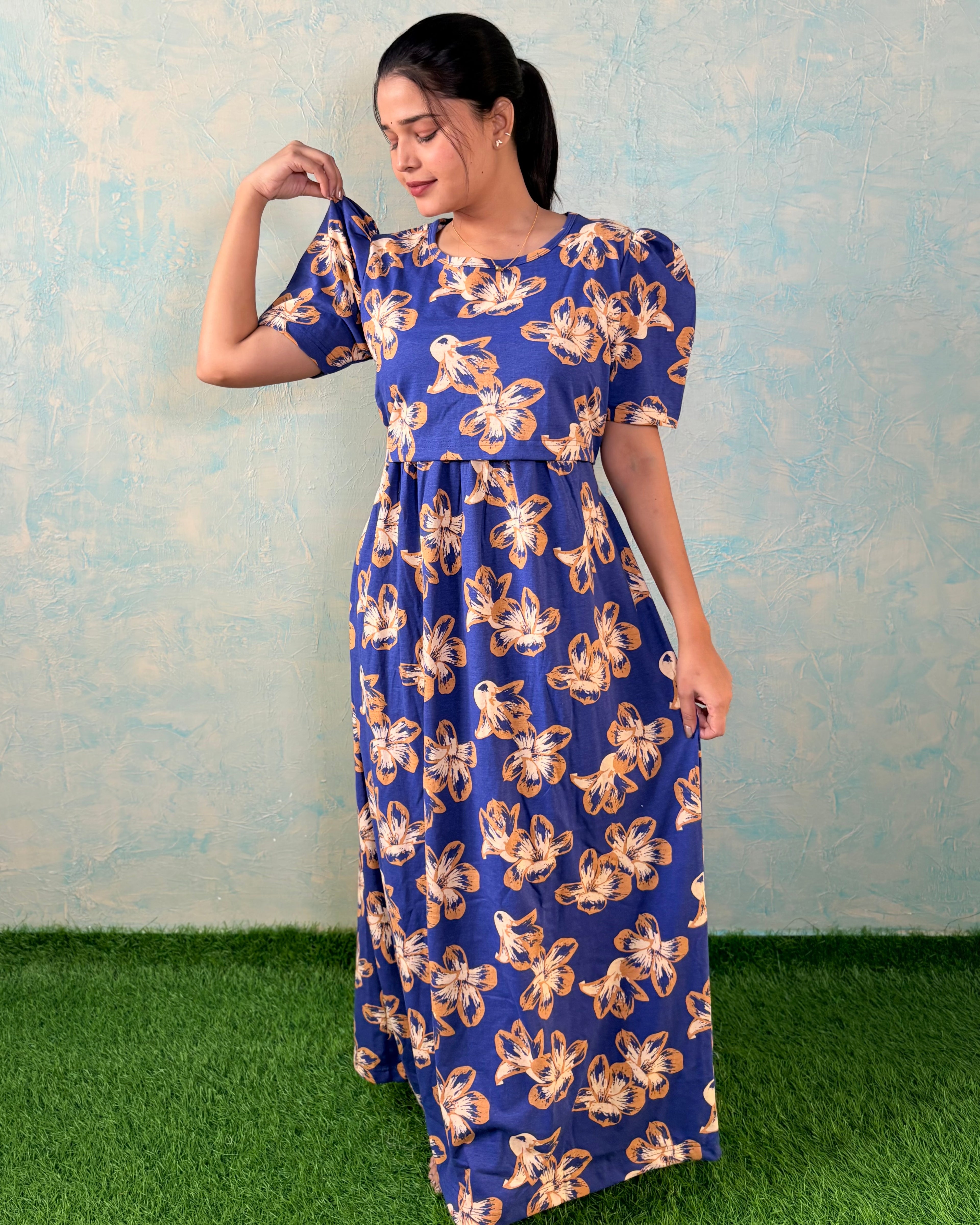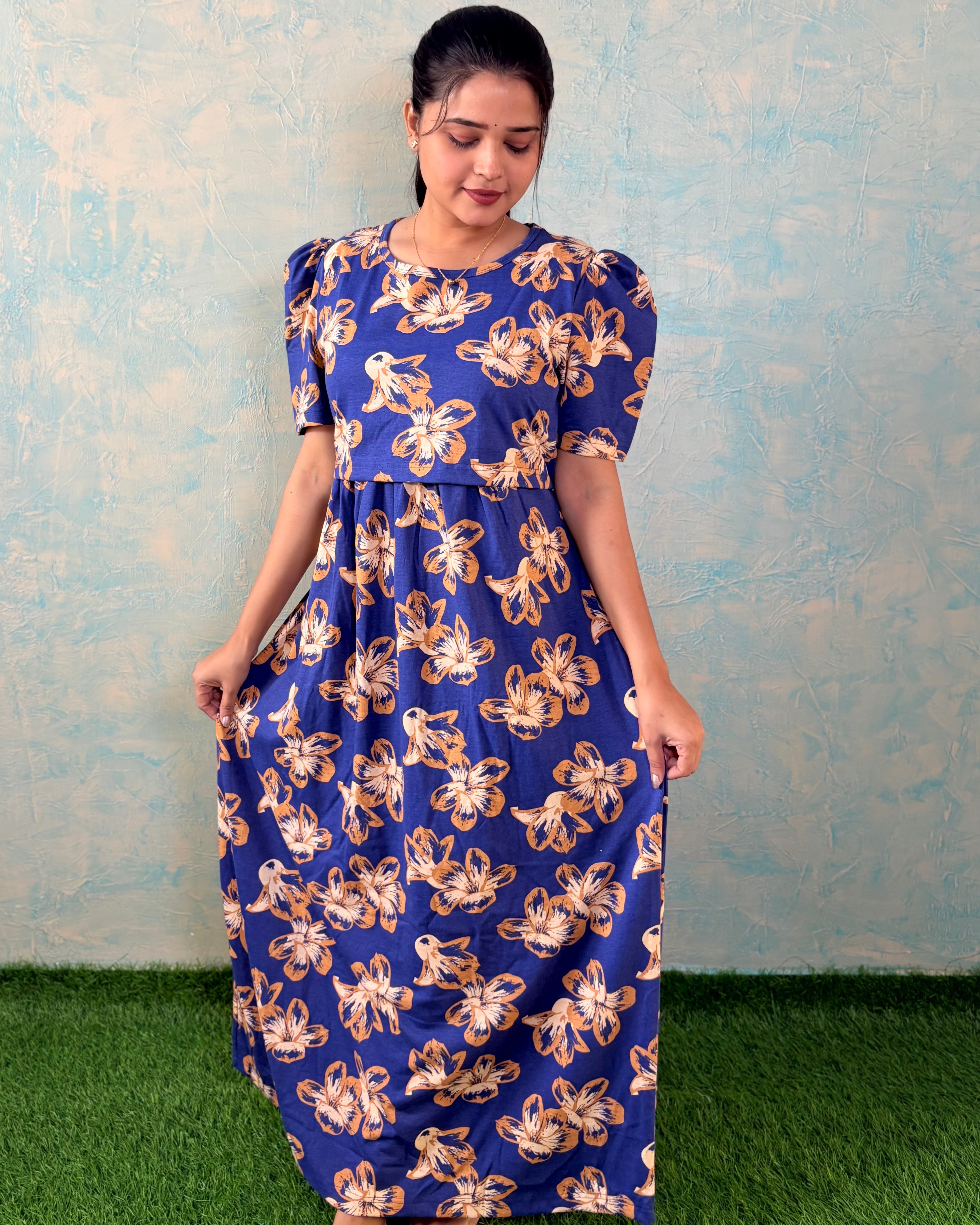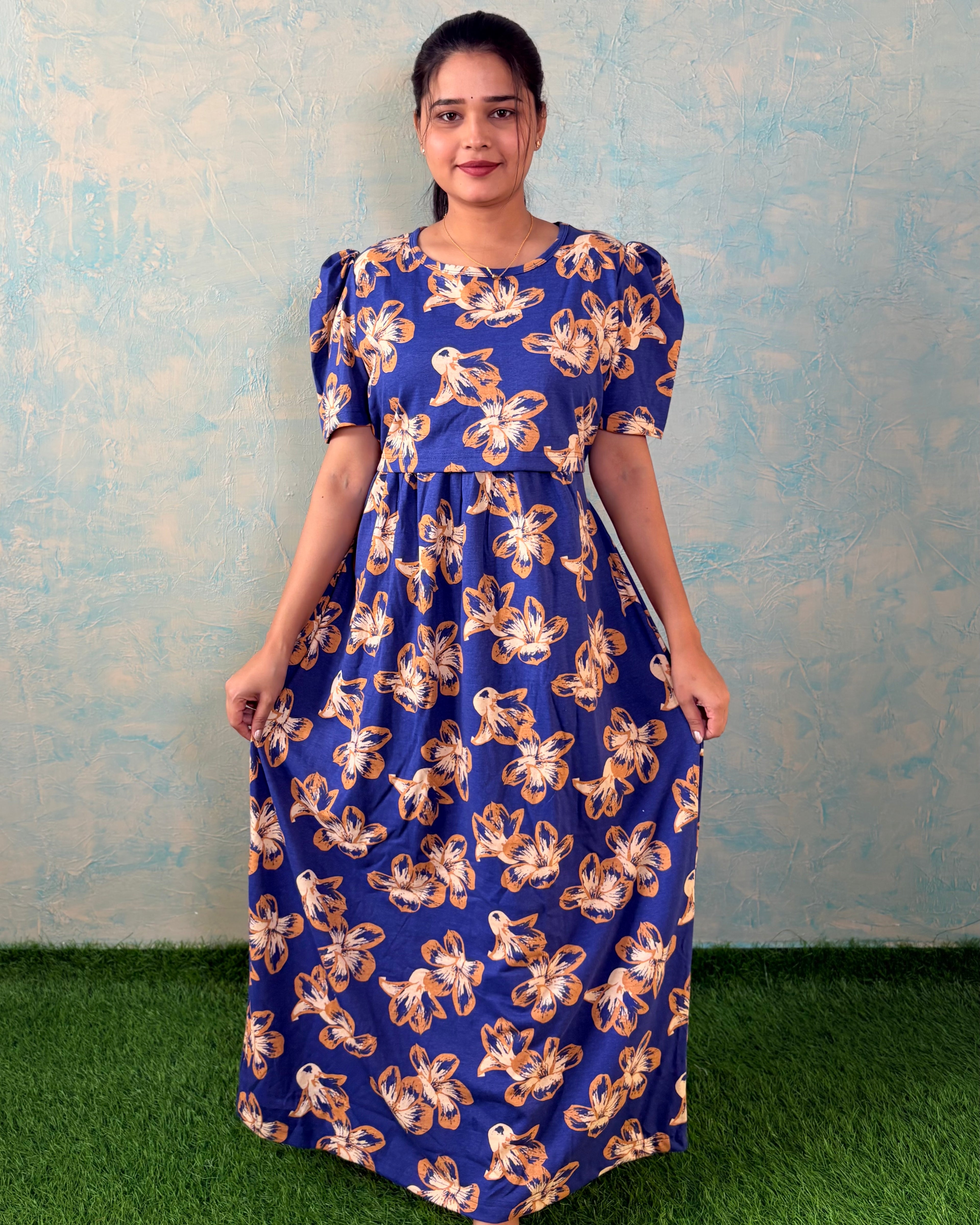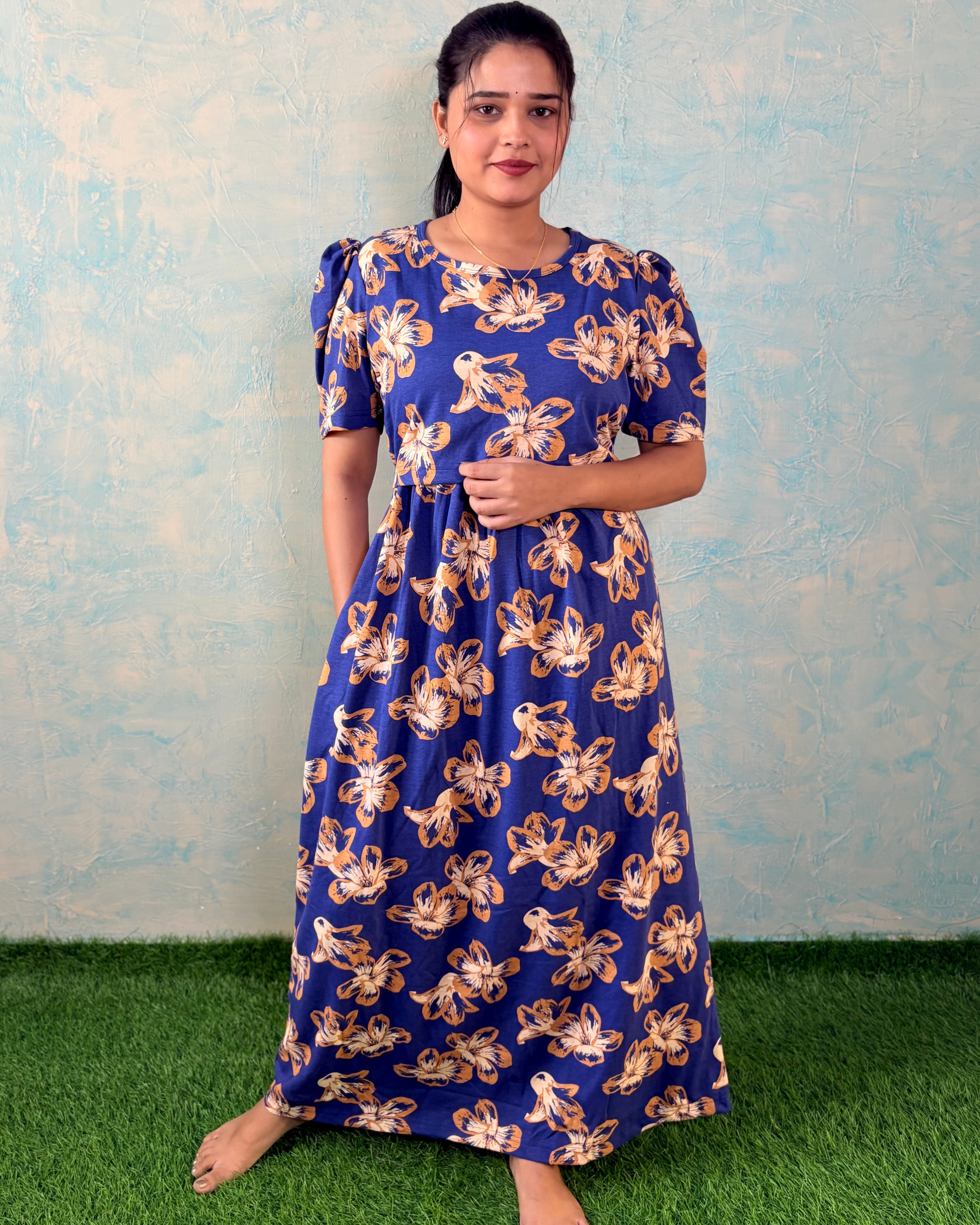 Inner feeding neck is V shape. Versatile & Stylish – Designed for both loungewear and casual outings, so you can wear it comfortably at home or when running errands. Length of the dress is 52 inches (+/-1 inch). There may be small variation in the colour due to photography and lighting effects.