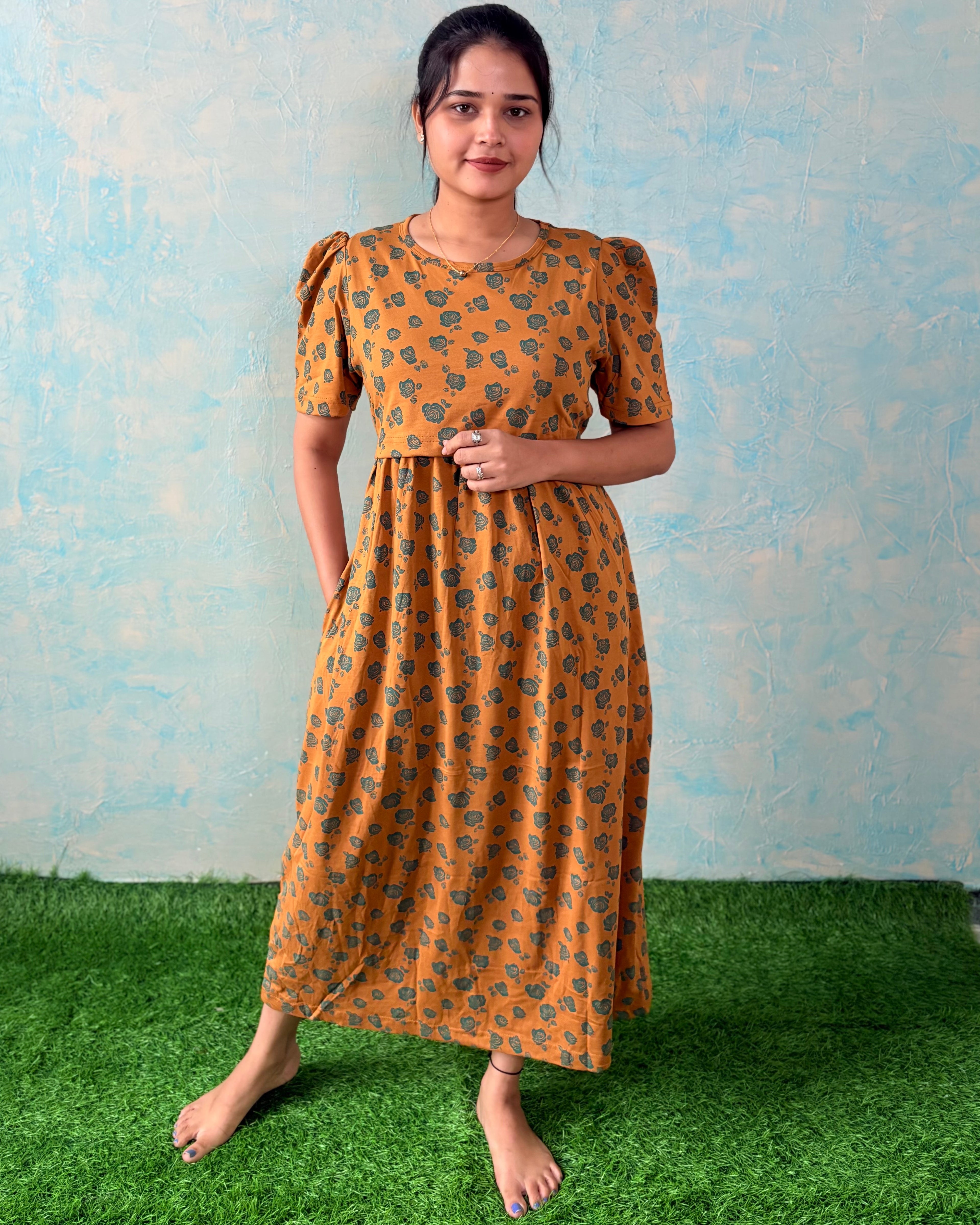 Inner feeding neck is V shape. Versatile & Stylish – Designed for both loungewear and casual outings, so you can wear it comfortably at home or when running errands. Length of the dress is 48 inches (+/-1 inch). There may be small variation in the colour due to photography and lighting effects.