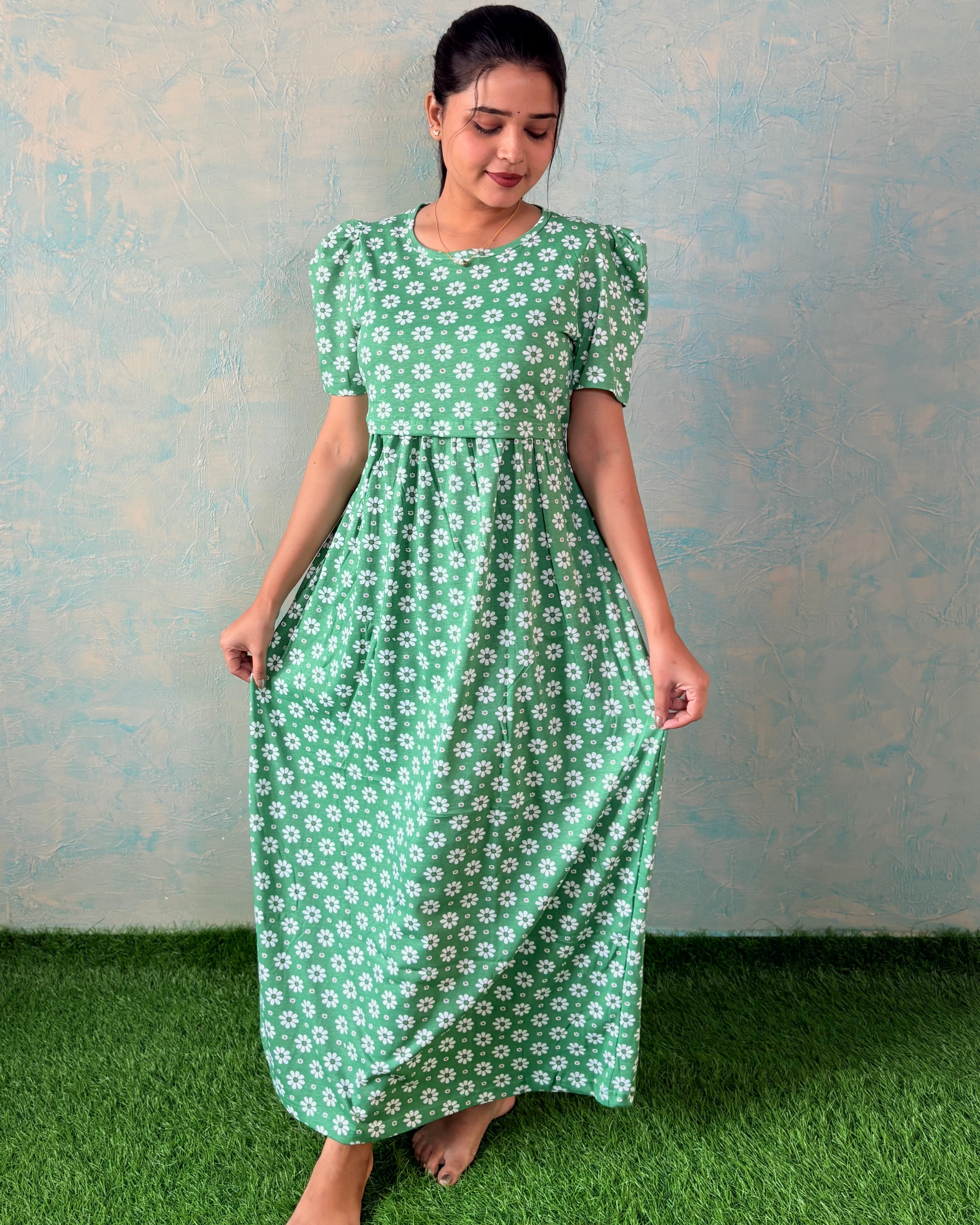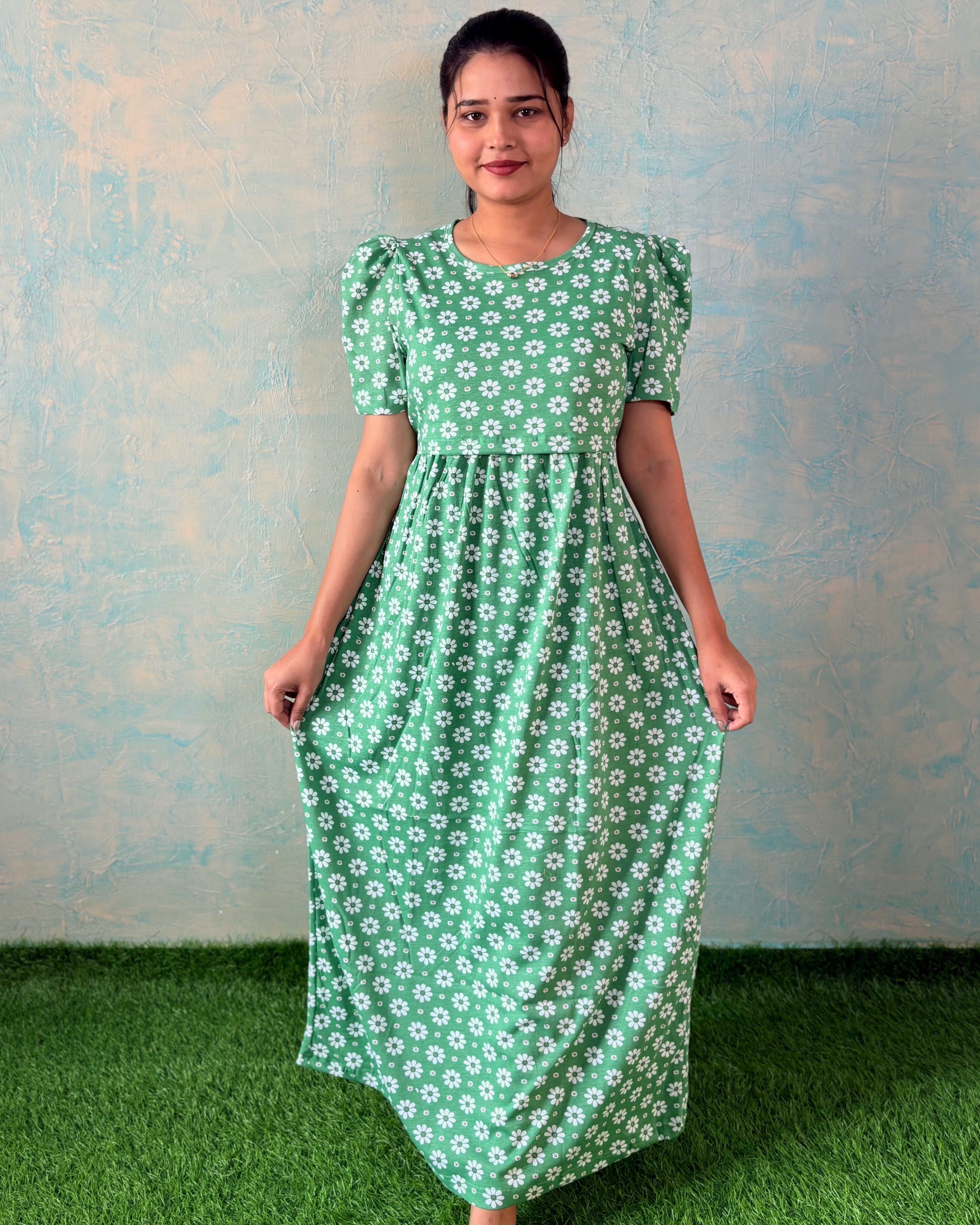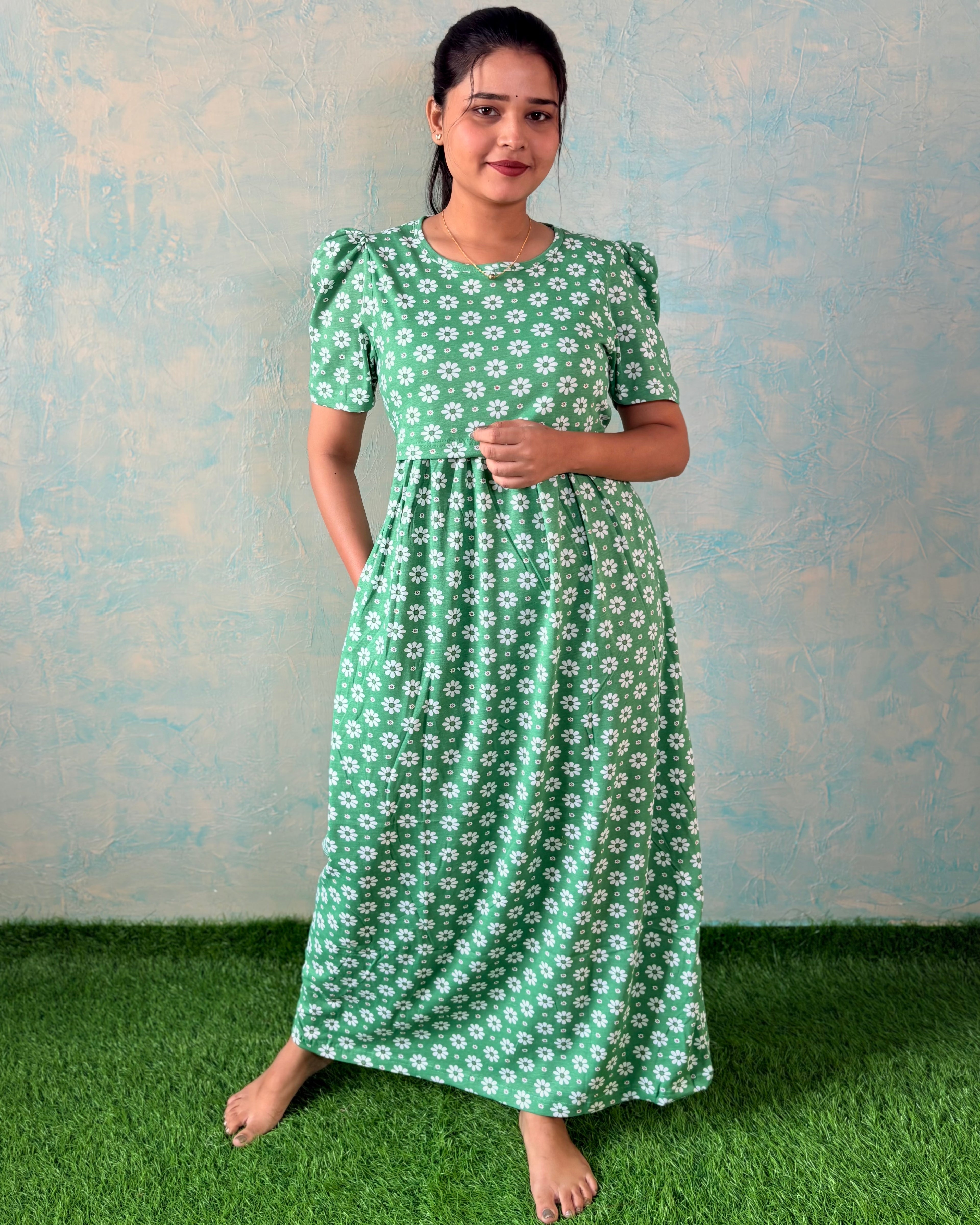 Inner feeding neck is V shape. Versatile & Stylish – Designed for both loungewear and casual outings, so you can wear it comfortably at home or when running errands. Length of the dress is 52 inches (+/-1 inch). There may be small variation in the colour due to photography and lighting effects.